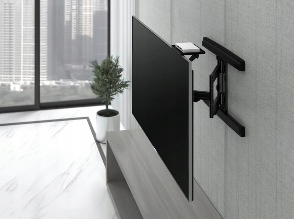 ➡️ Чрезвычайно инновационное, но простое решение для безопасного хранения небольших AV-компонентов над телевизором или монитором