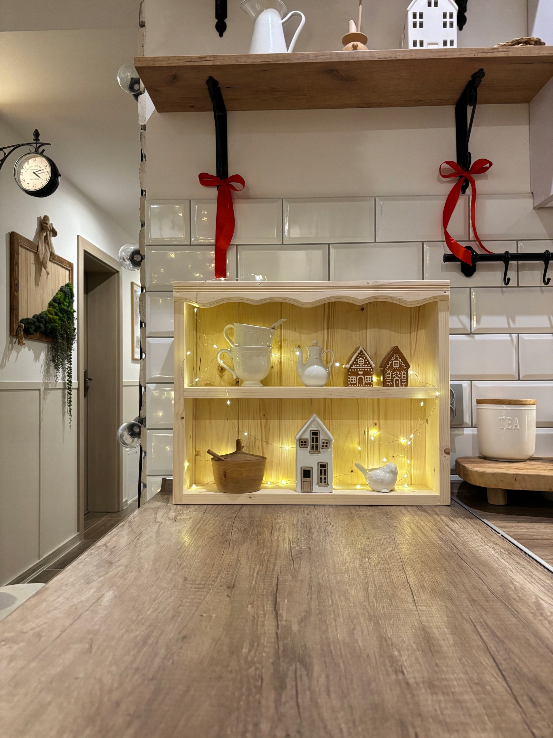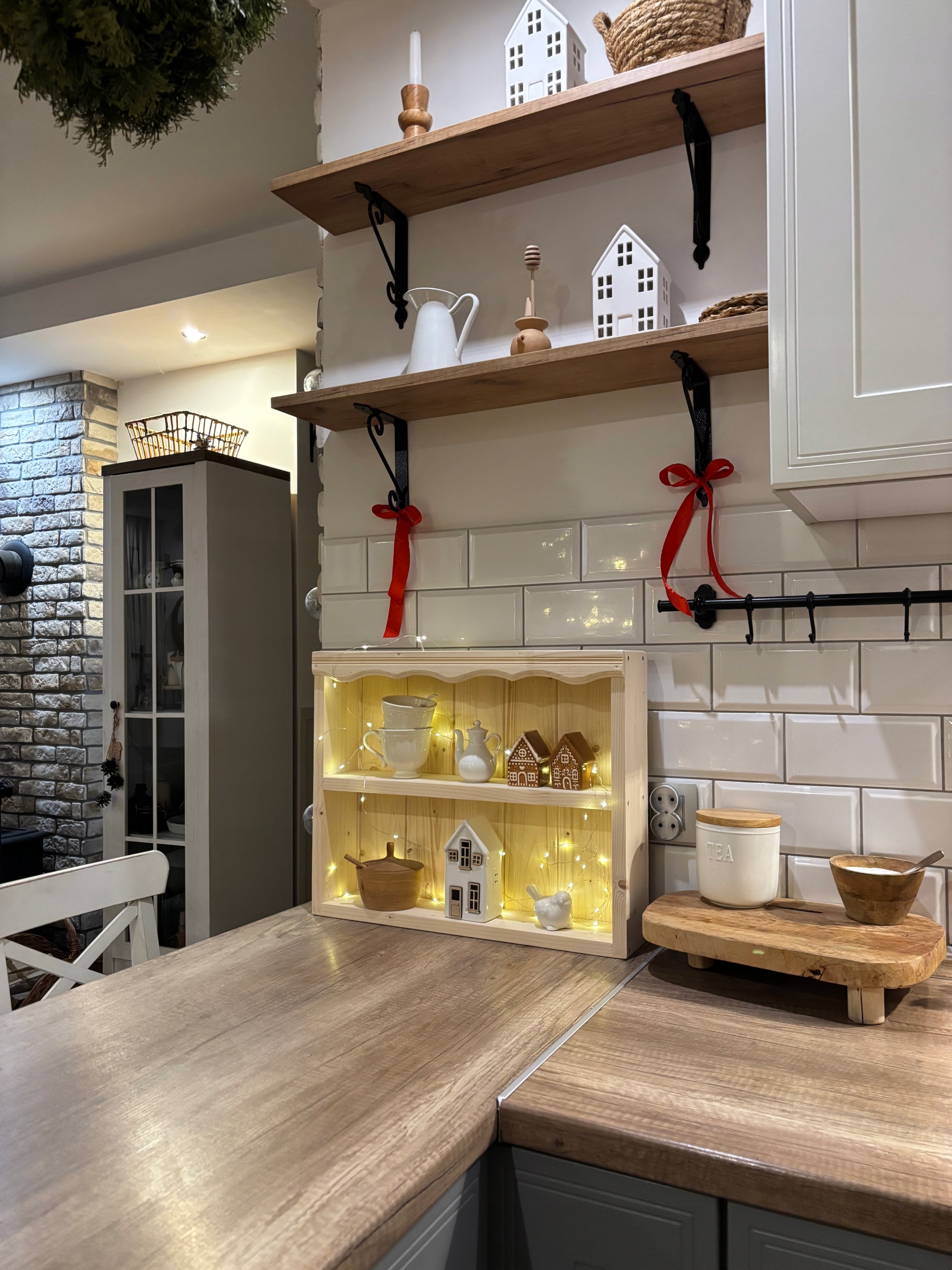 Практическая и декоративная деревянная кухонная полка, идеально подходящая для хранения чашек, специй, баночек и кухонных безделушек. Стиль винтаж / деревенский дом / ретро прекрасно сочетается с классической, деревенской и скандинавской кухней.