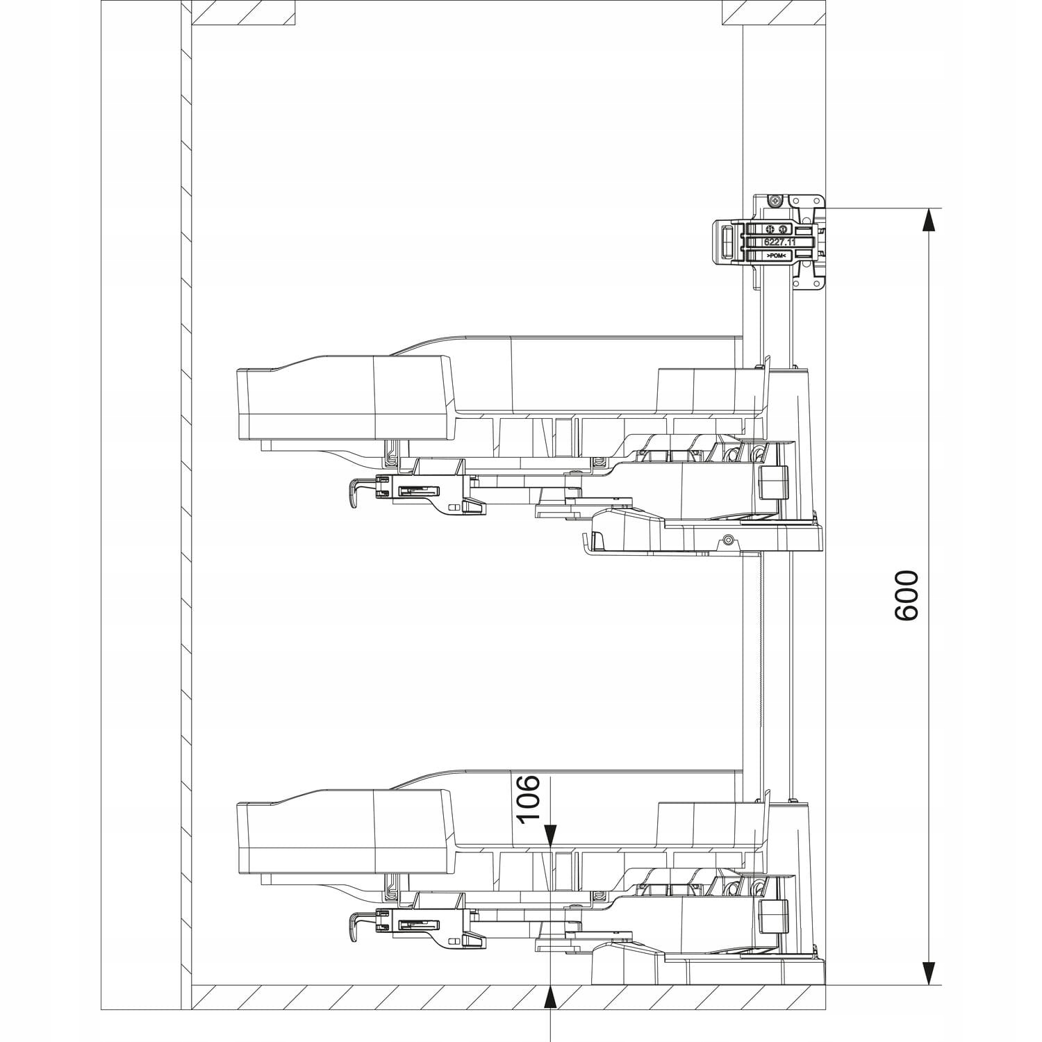 - бесступенчатая регулировка высоты верхней полки без инструментов.