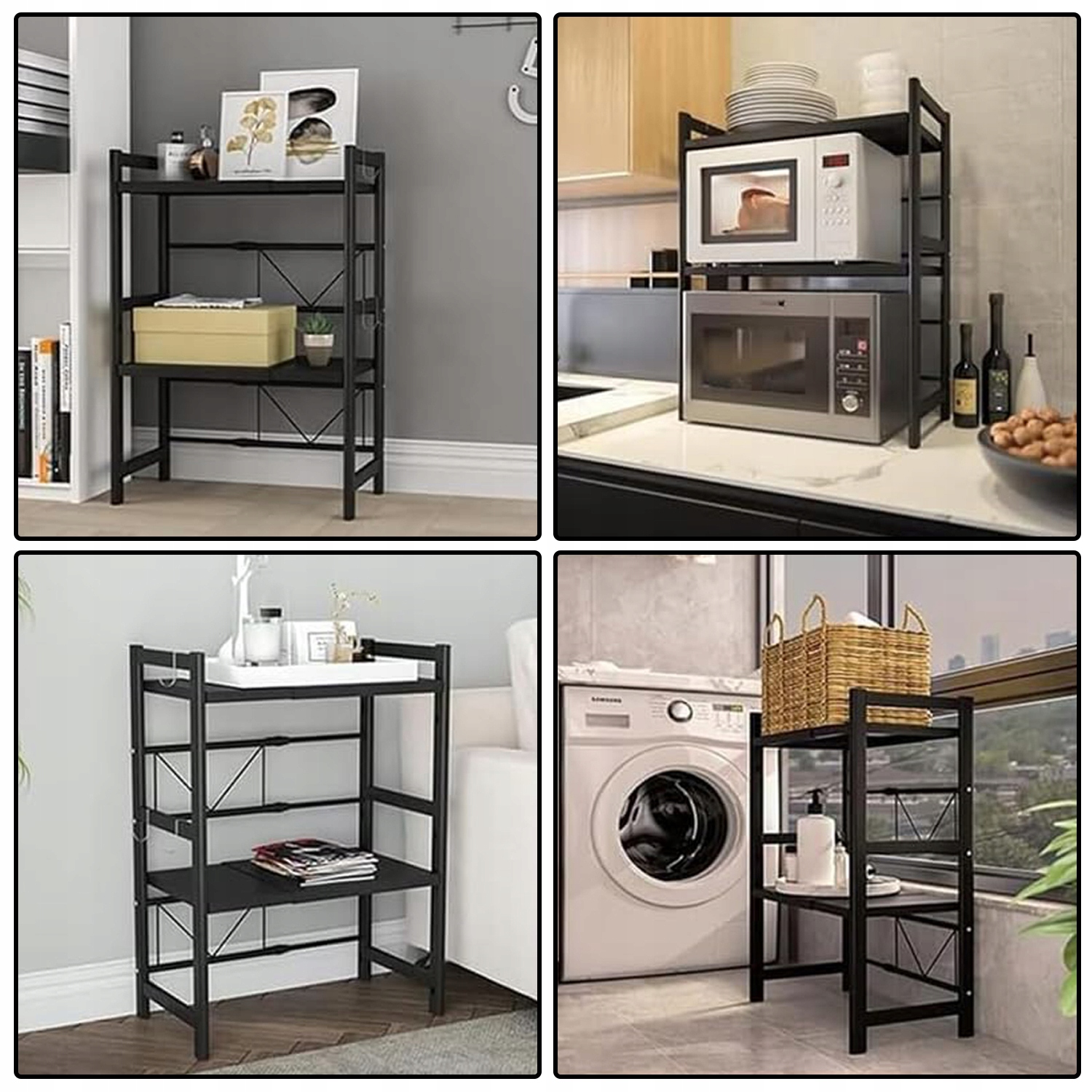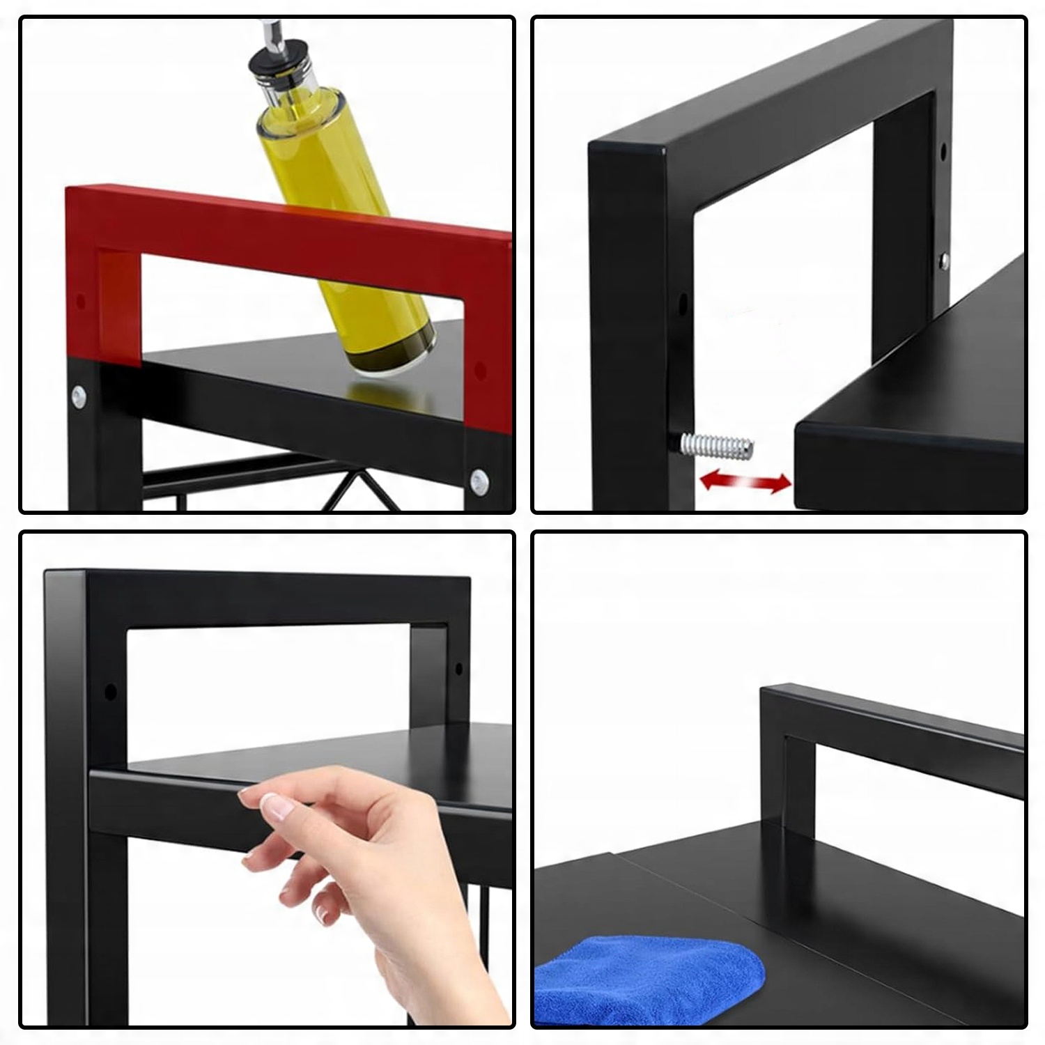 ✅ Высококачественный материал: изготовлен из прочной углеродистой стали и покрыт органической черной краской, устойчивой к высоким температурам и ржавчине, обеспечивая длительное использование. Дизайн достаточно силен, чтобы сохранить микроволновую печь и другие кухонные аксессуары, такие как посуды, специи, банки, бутылки, тарелки, кастрюли и сковородки.