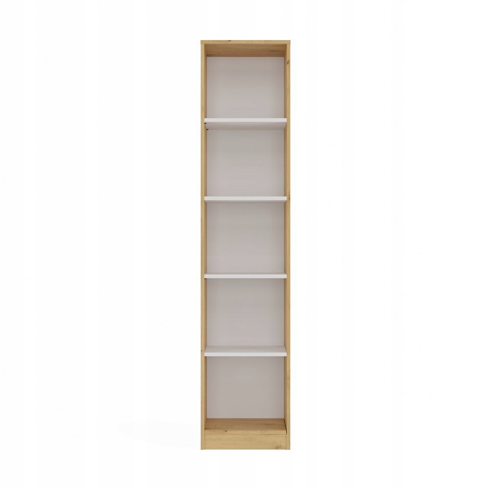 Книжный шкаф R40 – стильное и практичное решение для хранения книг, переплетчики, украшения и канцелярские товары. Сочетание теплого оттенка ремесленного дуба с контрастными белыми полками придает мебели современный и элегантный характер. Идеально подходит для офиса, гостиной, детской комнаты и домашней библиотеки.