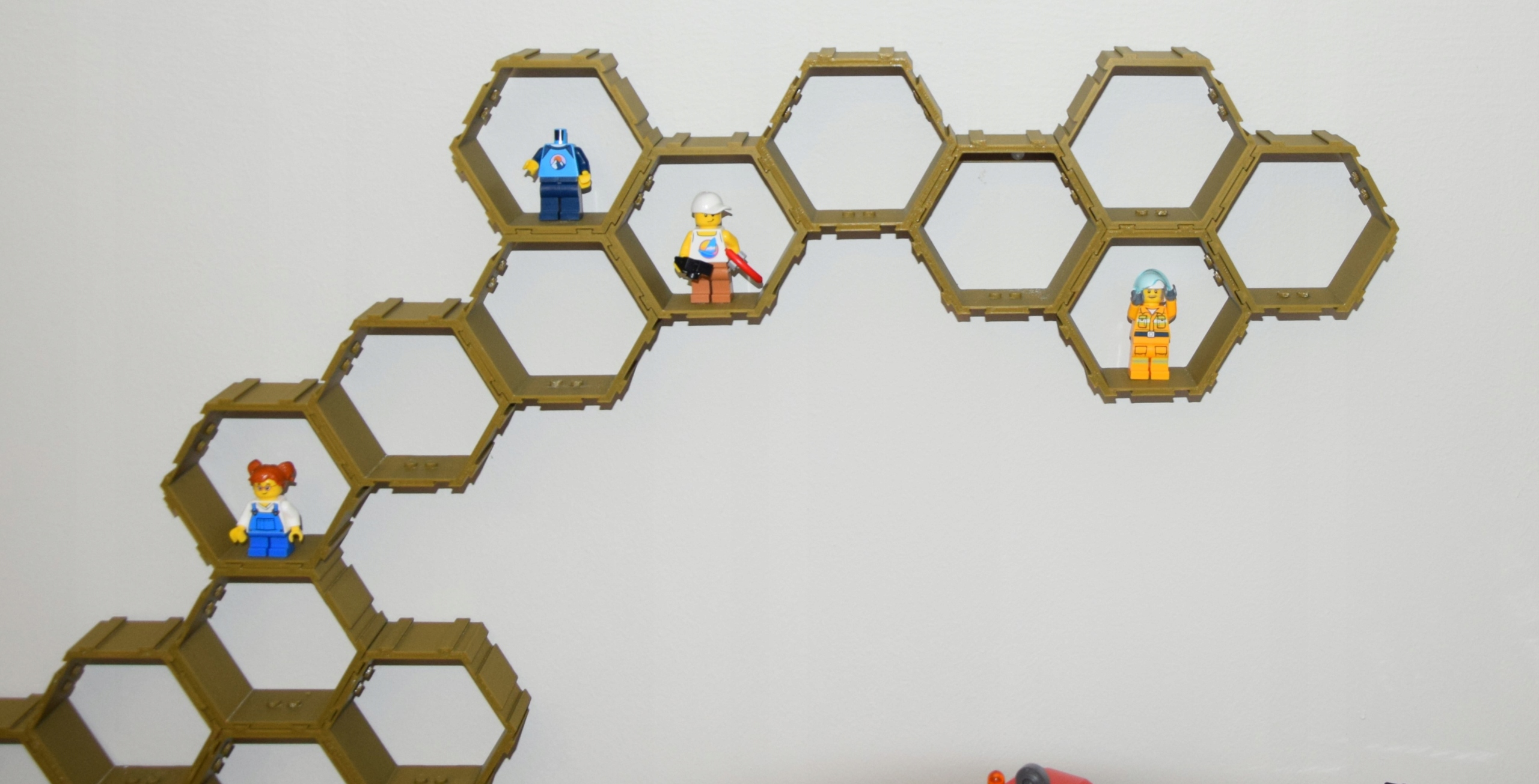 - Современный дизайн: шестиугольная форма придает полке уникальный характер и превращает любую коллекцию фигурок LEGO в центральный элемент декора.
