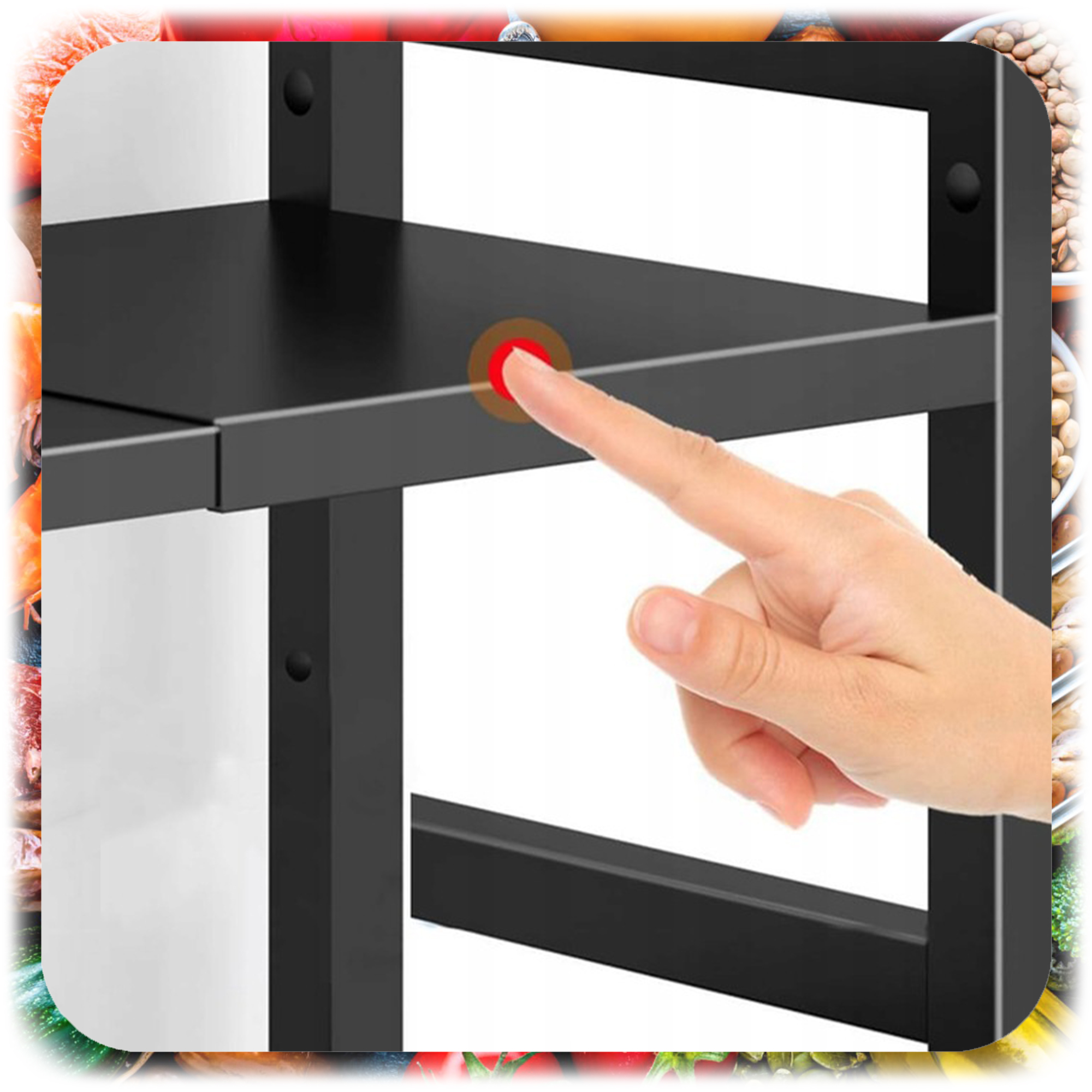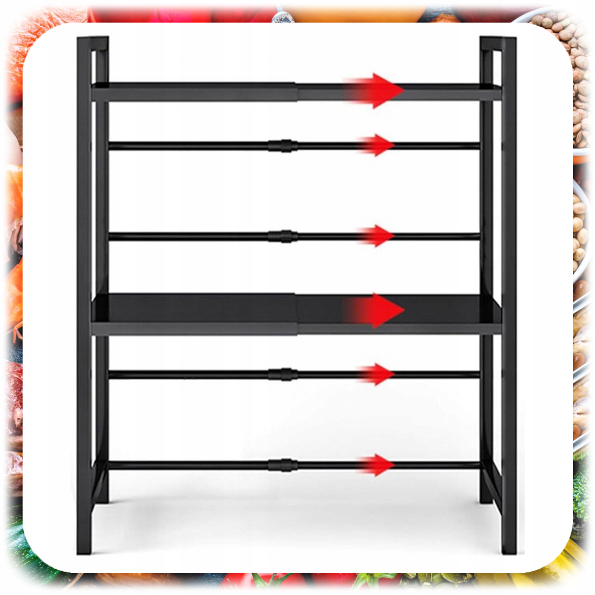 ПОЛКА ДЛЯ МИКРОВОЛНОВОЙ ПЕЧИ КУХОННАЯ ПОЛКА, ЧЕРНАЯ, ВЫДВИЖНАЯ + 6 КРЮЧКОВ