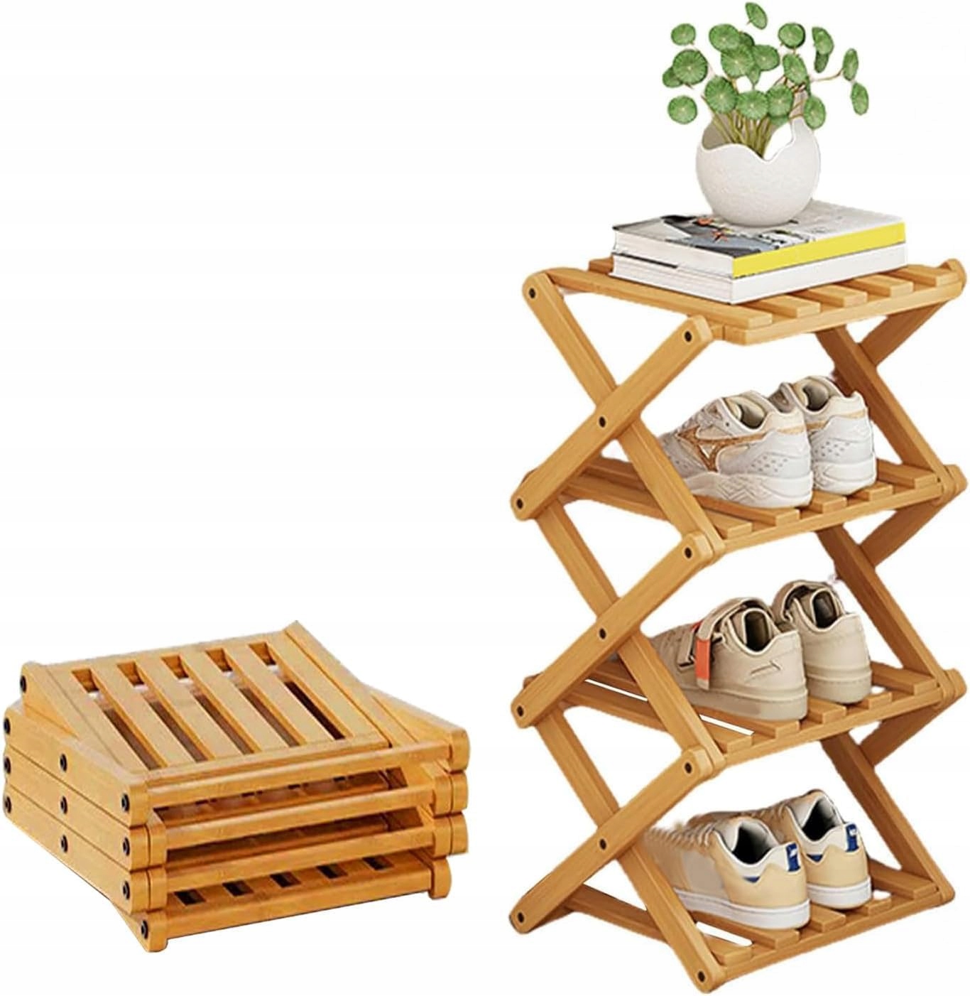 👟👟【 твердое и долговечное】 из прочного бамбука с высокой нагрузкой, отвечает ежедневным потребностям хранения всех типов обуви. Укрепленная складная рама обеспечивает твердую поддержку.