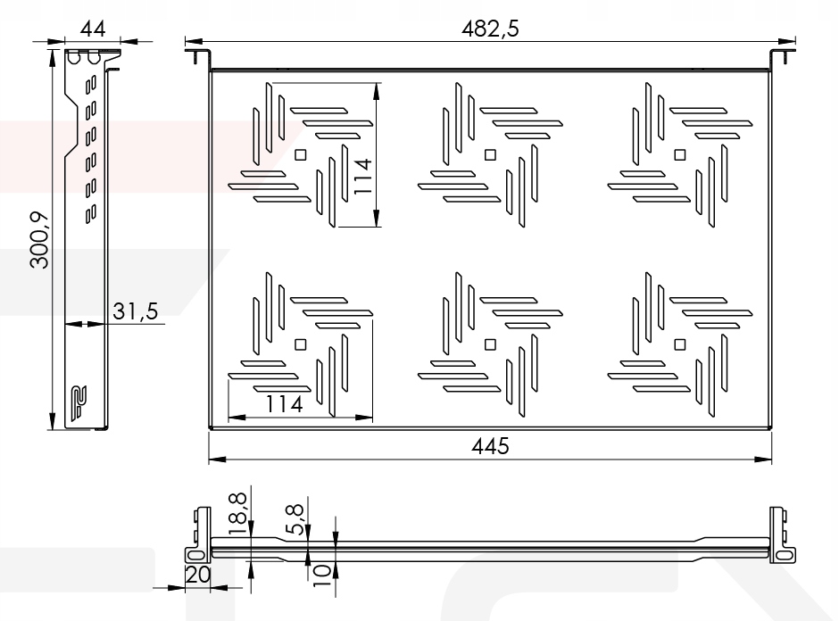 Внешние размеры: Ш=482,5 Г=300,9 В =44 [мм]