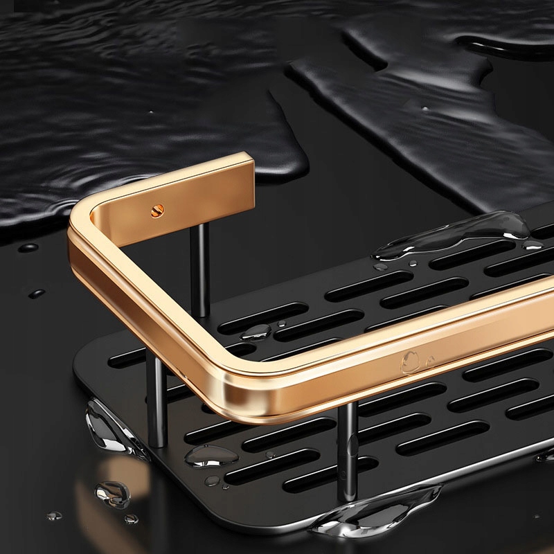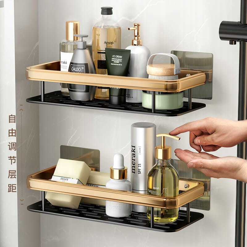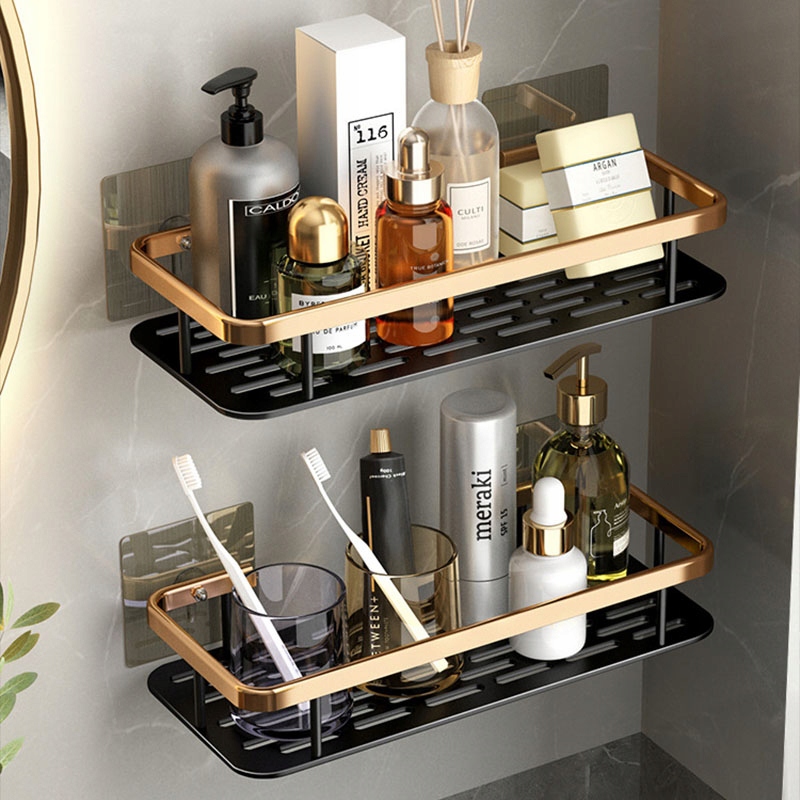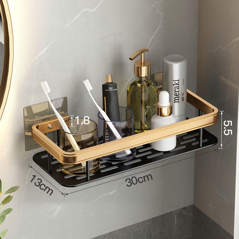 Полка для душа без сверления Полка для ванной комнаты Полка для ванной комнаты Алюминиевая самоклеящаяся полка для ванной комнаты, 2 шт., 31,5x13,5x5 см (ДхШхВ), черный и золотой (медно-золотой)
