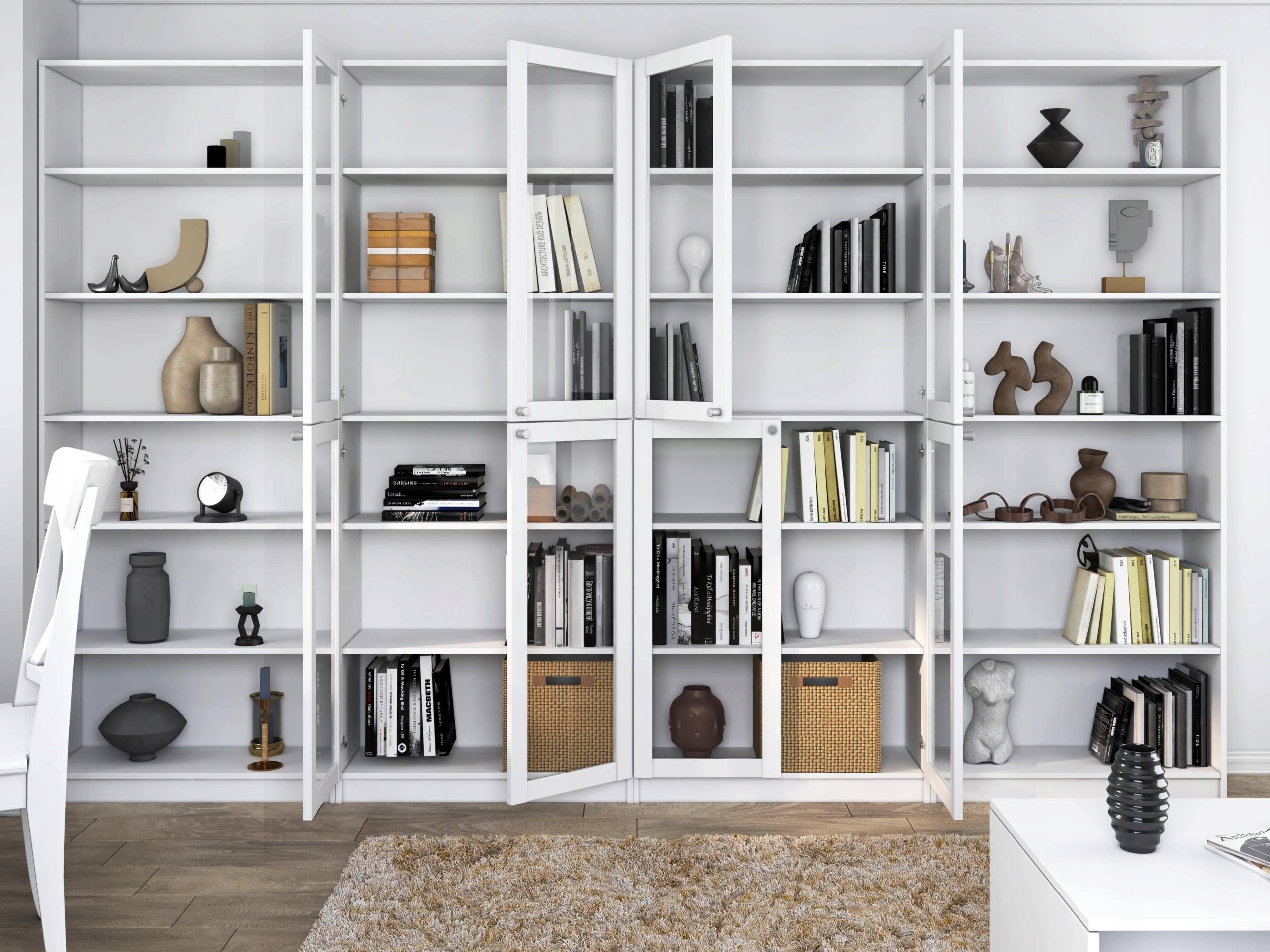 Классическая высокая и широкая офисная витрина/полка — идеальное решение для хранения книг, игрушки, папки и фирменные материалы.