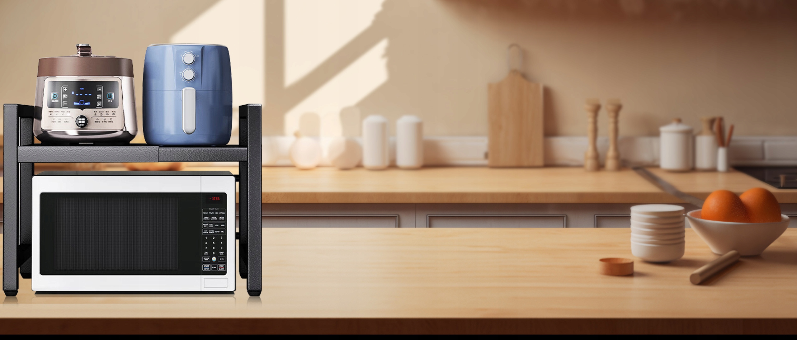 Эта регулируемая полка для микроволновой печи предназначена для современных кухонь. Независимо от того, хотите ли вы хранить микроволновую печь, духовку или другие кухонные приборы, эта полка будет отвечать вашим потребностям. Изготовлен из толщиной углеродистой стали, стабильной, устойчивой к ржавчине и долговечна. Благодаря много -функциональным крючкам, он предоставляет дополнительное место для хранения, которое является незаменимым помощником в поддержании порядка на кухне!
