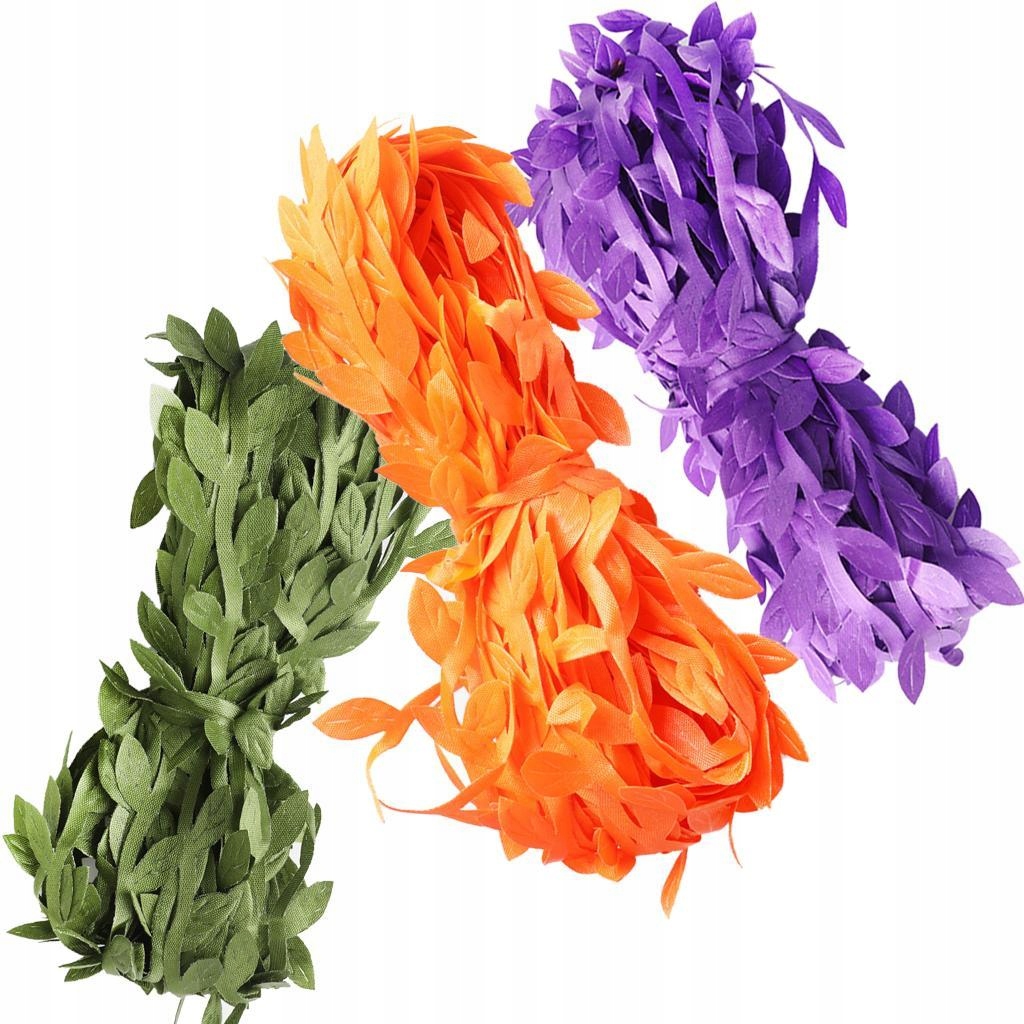 Поліестерова атласна стрічка з листям фіолетово-зелено-помаранчева
