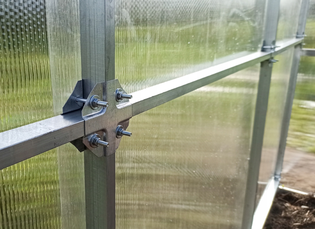 >Все необходимые для сборки элементы входят в комплект. Саморезы для крепления каркаса теплицы, специальные саморезы с резиновой прокладкой из EPDM для монтажа поликарбоната.