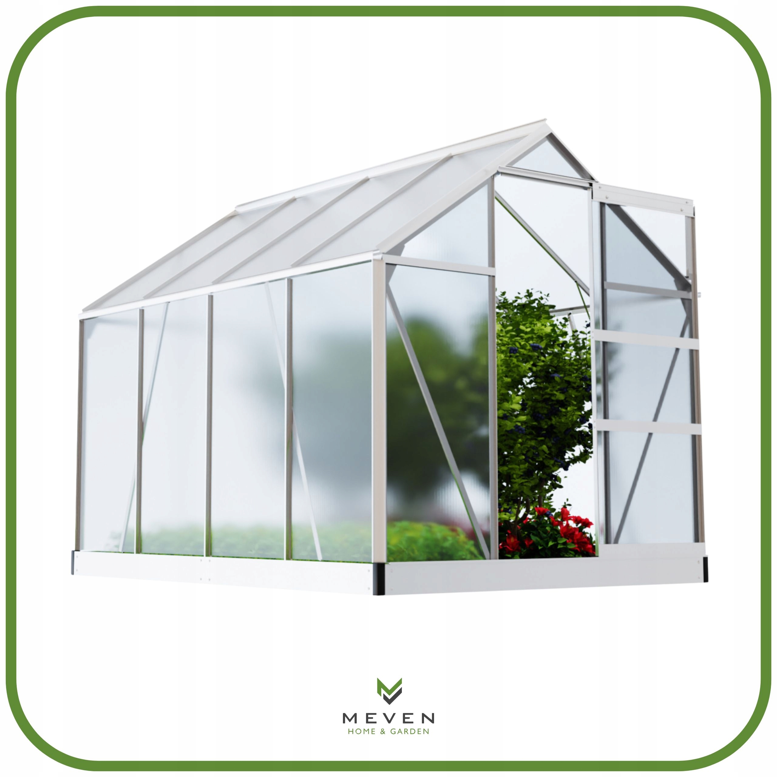 ✅ Удобный доступ – широкие раздвижные двери облегчают ежедневное использование теплицы.
