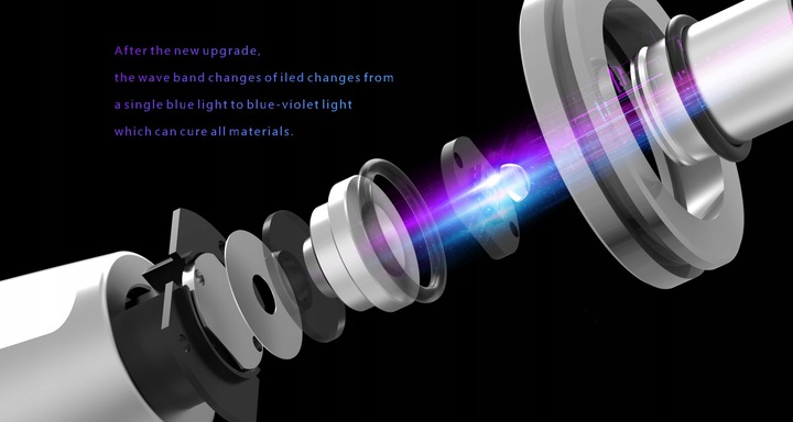 После обновления свет светодиода меняется с синего на сине-фиолетовый, что позволяет полимеризовать все материалы