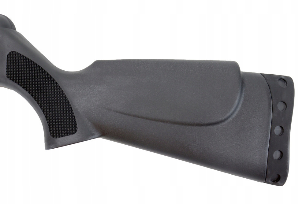 Приклад изготовлен из приятного на ощупь и ударопрочного полимера. Имеет симметричную щеку и канавки в передней части и на рукоятке, улучшающие хват.