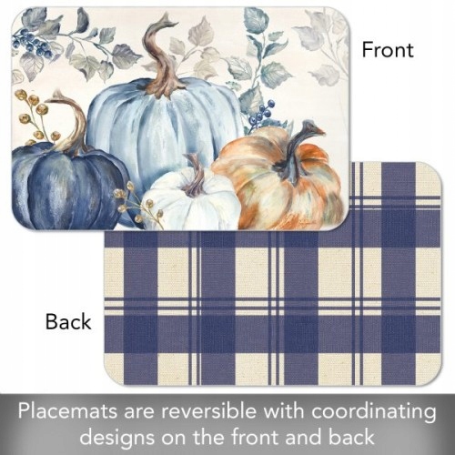 БОЛЬШАЯ ПОДСТАВКА НА СТОЛОВЫЙ - ДВУХСТОРОННЯЯ, бренд Cala Home - Pumpkin Blues - Тыквы и клетка