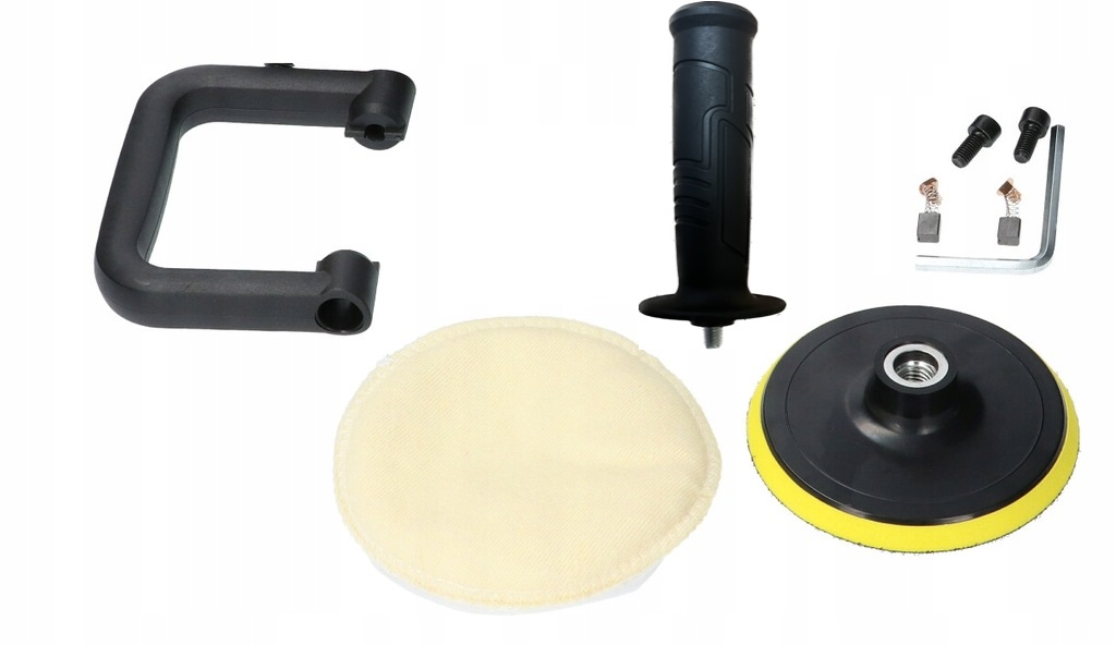 В комплекте диск 180 мм, без отверстий, полировальный мех, дополнительный набор щёток.