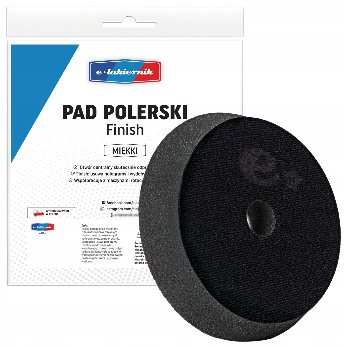Самый деликатный из набора — мягкий диск, предназначенный для окончательной полировки, так называемого финиша. Позволяет придать лаку глубину, блеск и эффект мокрого вида. Идеально подходит для использования с финишными пастами. Благодаря своей гибкой структуре он адаптируется к форме поверхности, что сводит к минимуму риск появления пятен.