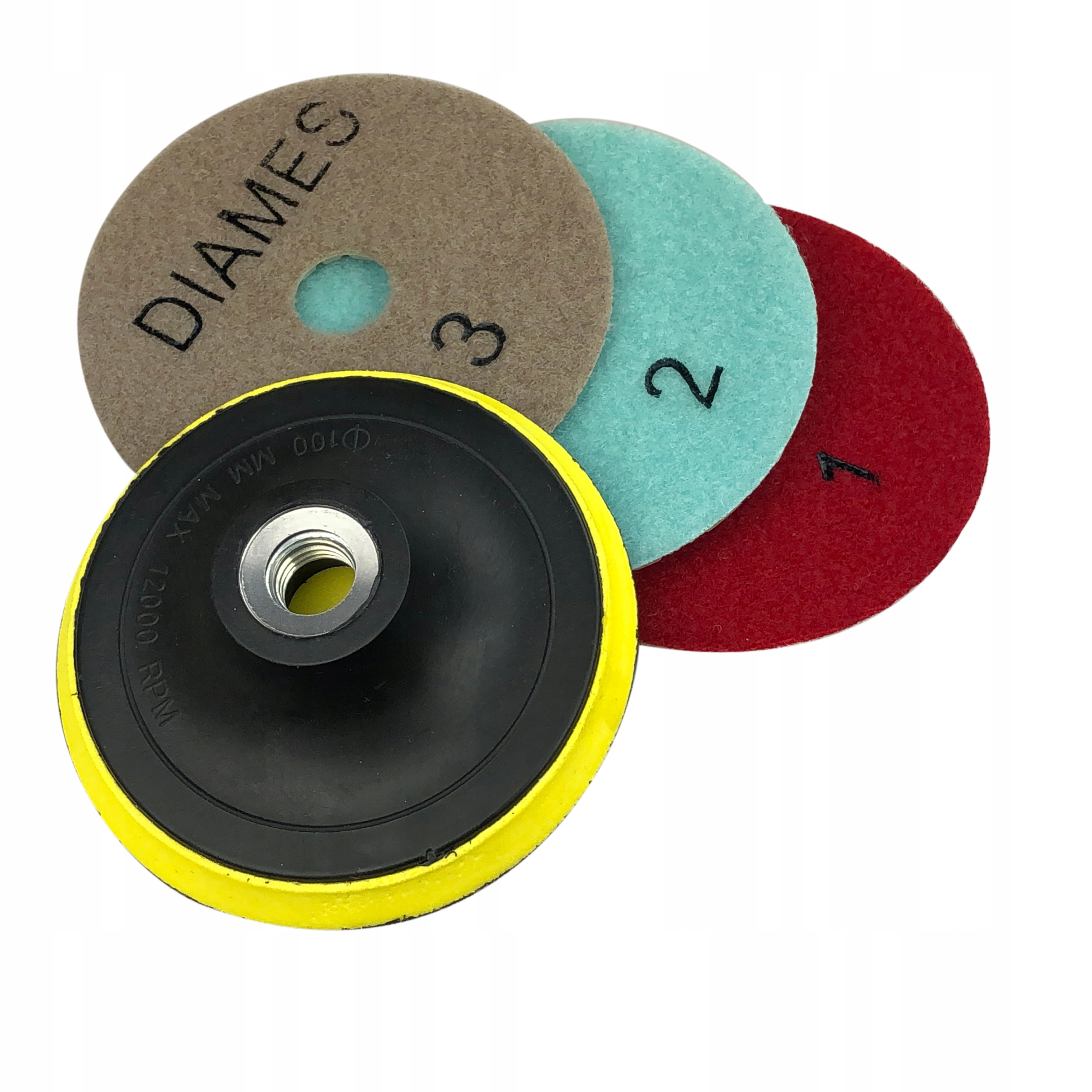 НАБОР ИЗ 3 АЛМАЗНЫХ ПОЛИРОВАЛЬНЫХ ДИСКОВ, 3-СТУПЕНЧАТЫЙ FI 100, ДЛЯ ПОЛИРОВКИ КАМНЯ, ГРАНИТА + ПЛАСТИКОВАЯ РУЧКА С ПЕНОЙ