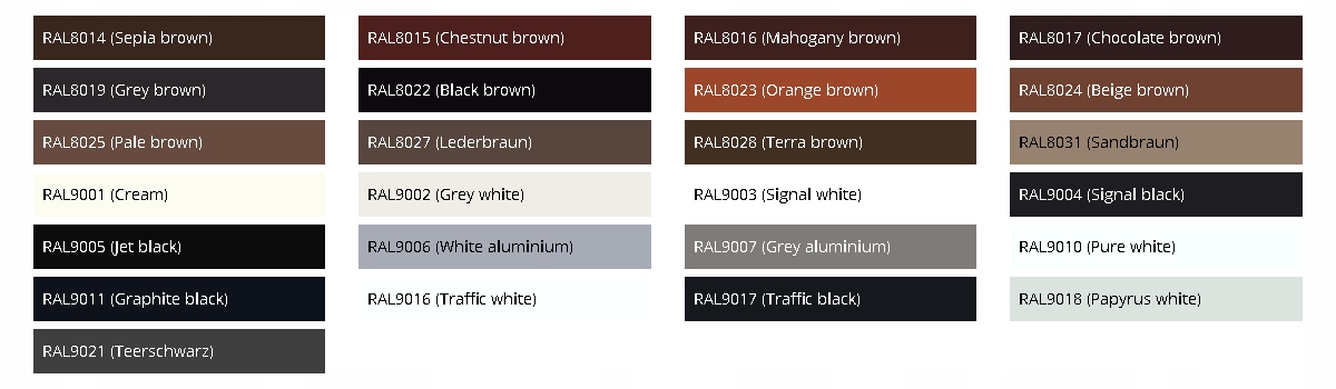 ВНИМАНИЕ!!! невозможность получения так называемых цветов флуоресцентные цвета RAL со словом «LUMINOUS» в названии