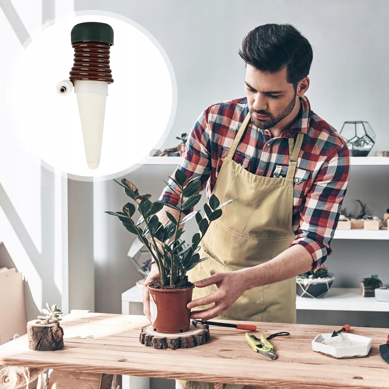 - Когда почва высыхает, керамический конус постепенно доставляет воду в окружающую почву.