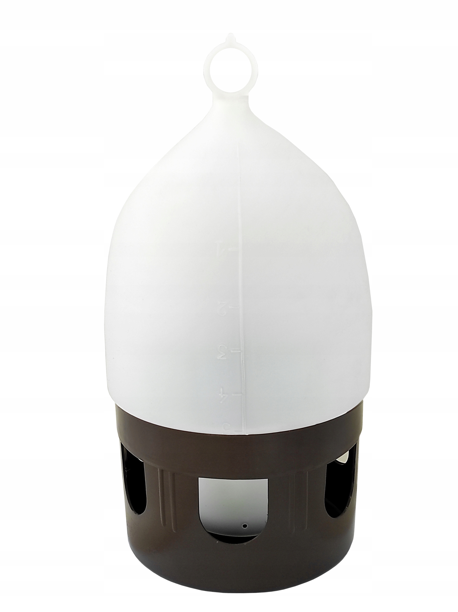 Предлагаемая нами поилка с основанием 19 см имеет 6 отверстий для питья размером 5 х 5,5 см. Сбоку дозатора также имеется практичная шкала объемом до 5,0 литров