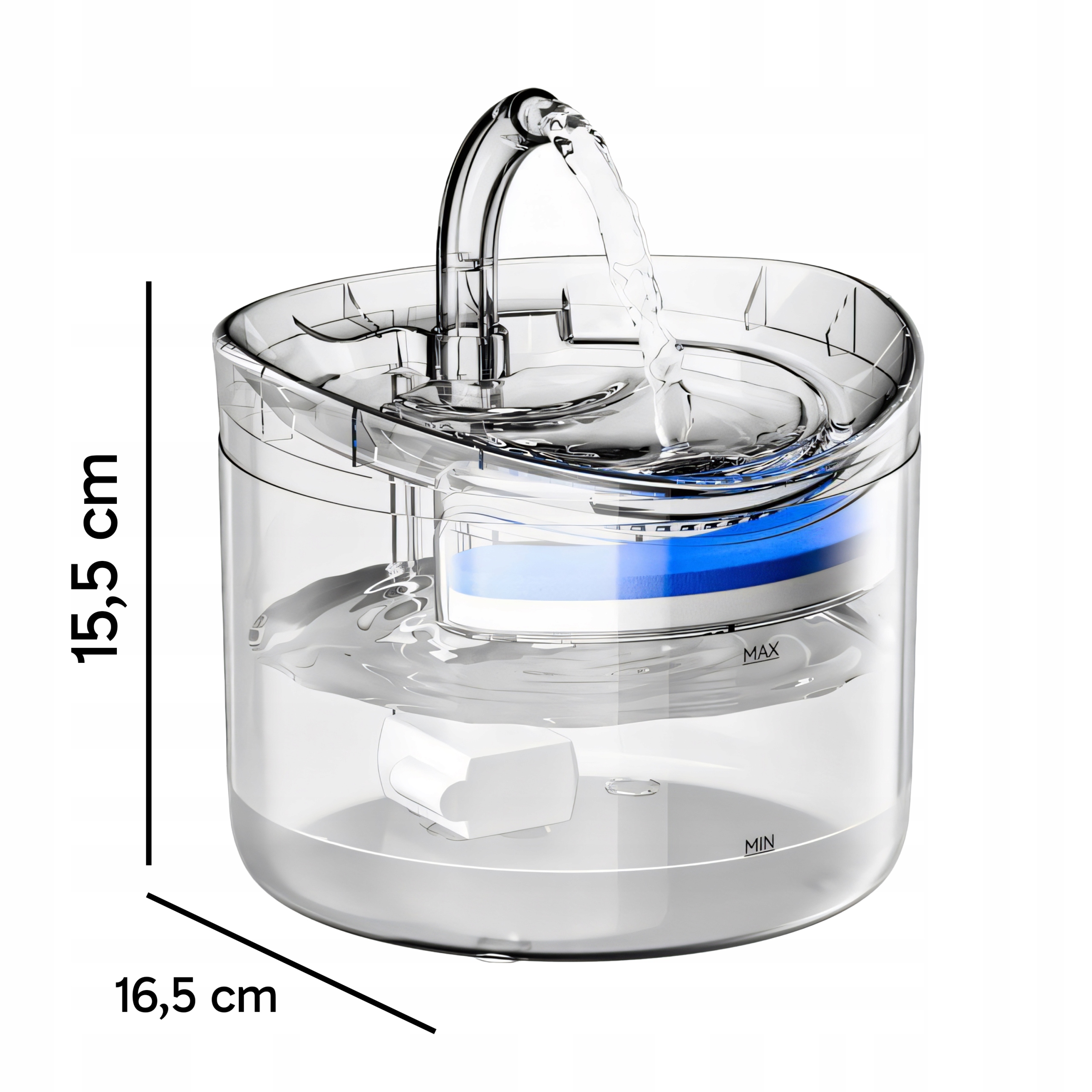 Устройство для домашних животных имеет большой резервуар емкостью до 2,5 литров, что обеспечивает длительный доступ к пресной воде для вашего питомца, сводя к минимуму необходимость частого дозаправки.