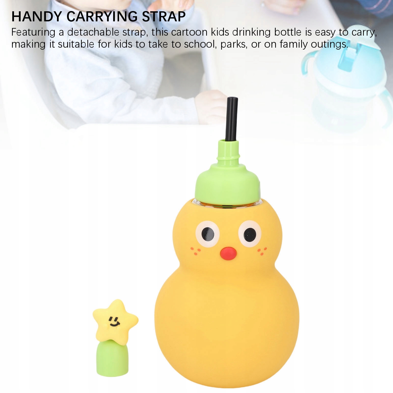3. Удобный ремень для переноски: благодаря съемному ремню эту мультяшную детскую бутылочку для питья легко носить с собой, поэтому дети могут ходить в школу, в парки или в семейные поездки.