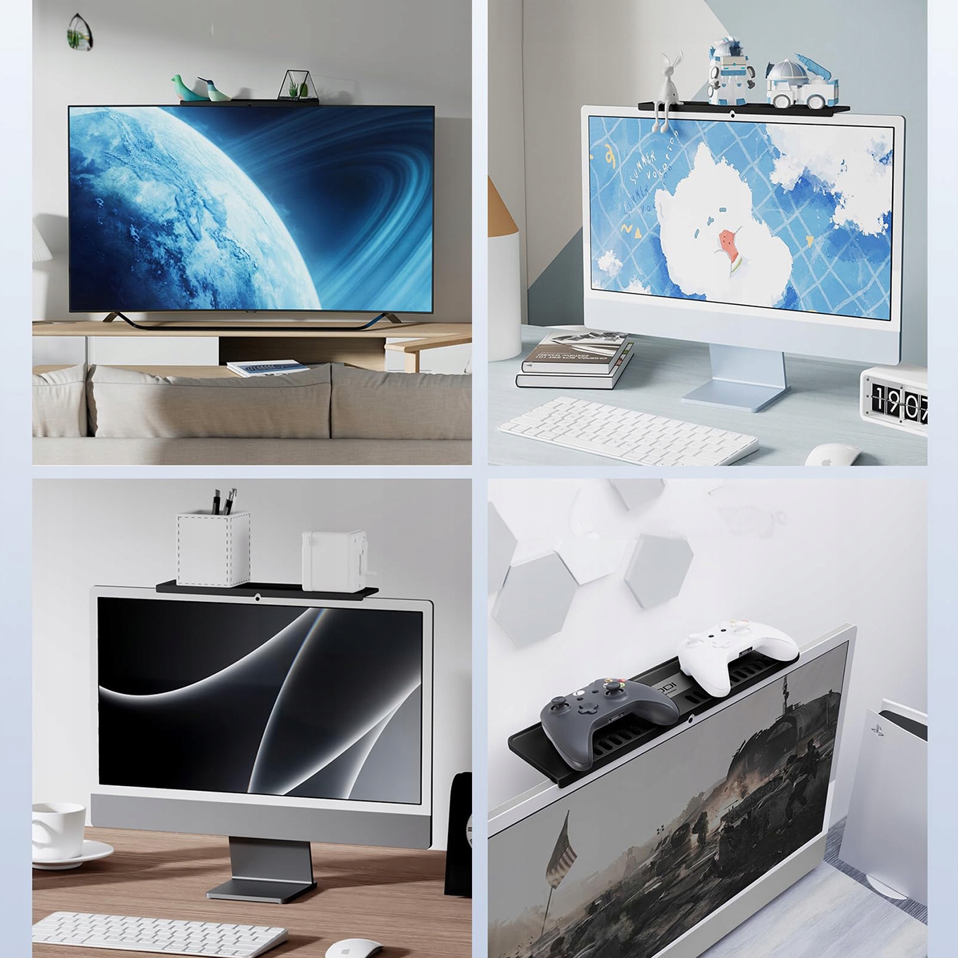 Эта полка — идеальное решение для различных помещений — от офиса, спальни, детской комнаты до комнаты геймера. Универсальный дизайн полки позволяет разместить на ней большинство мониторов, предоставляя дополнительное место для хранения и организации аксессуаров. Это делает полку идеальной для любого интерьера.