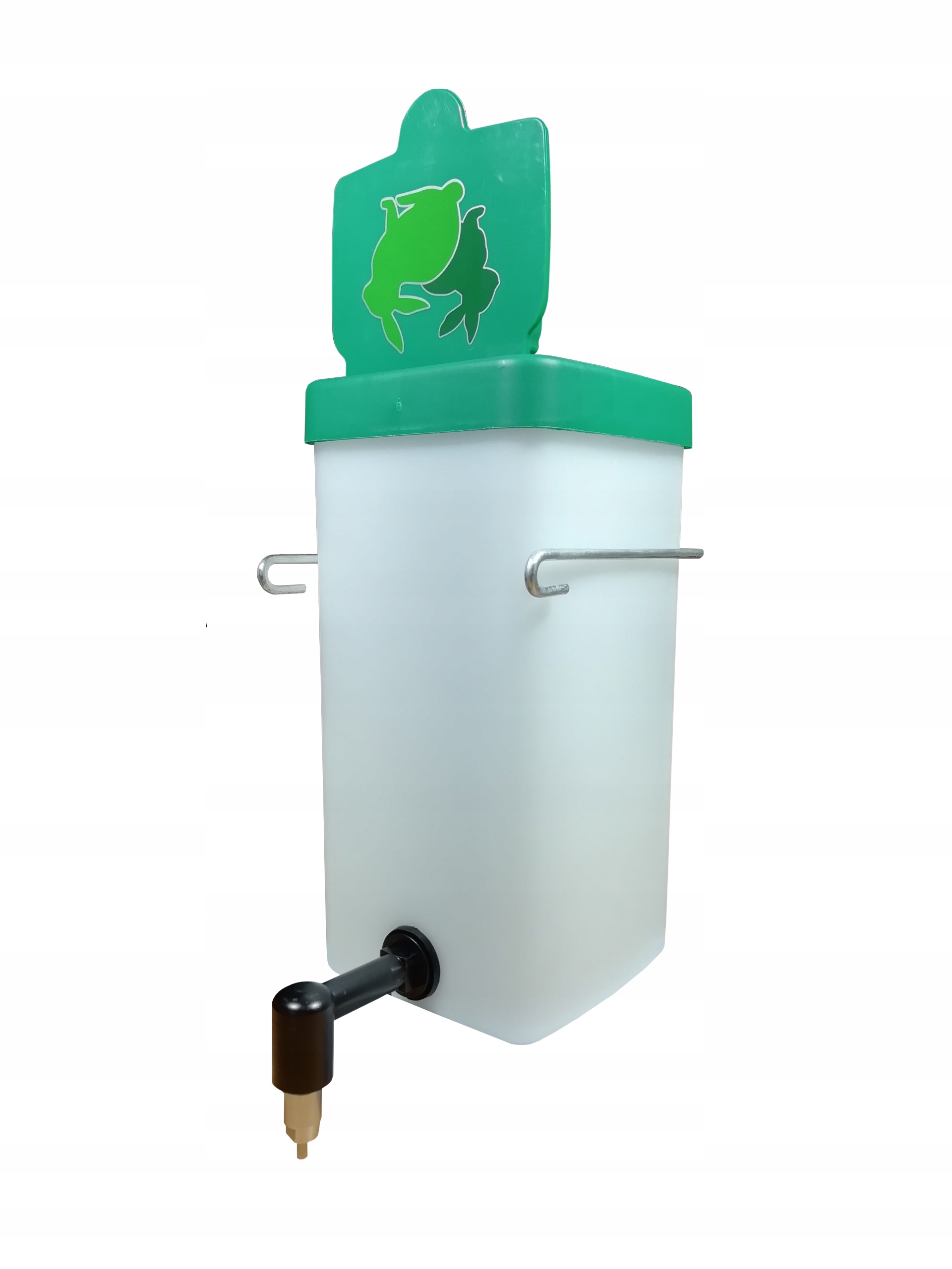 Предлагаемая поилка изготовлена из высококачественного пластика. Благодаря этому он пользуется положительным мнением среди заводчиков не только Польши, но и всей Европы. Поилку также можно использовать для разведения хищников и грызунов. Поилка имеет наконечник из нержавеющей стали. Сам контейнер изготовлен из АБС-пластика. Это материал, устойчивый к ультрафиолетовым лучам и химическим веществам. Также можно давать витамины с водой в поилке.