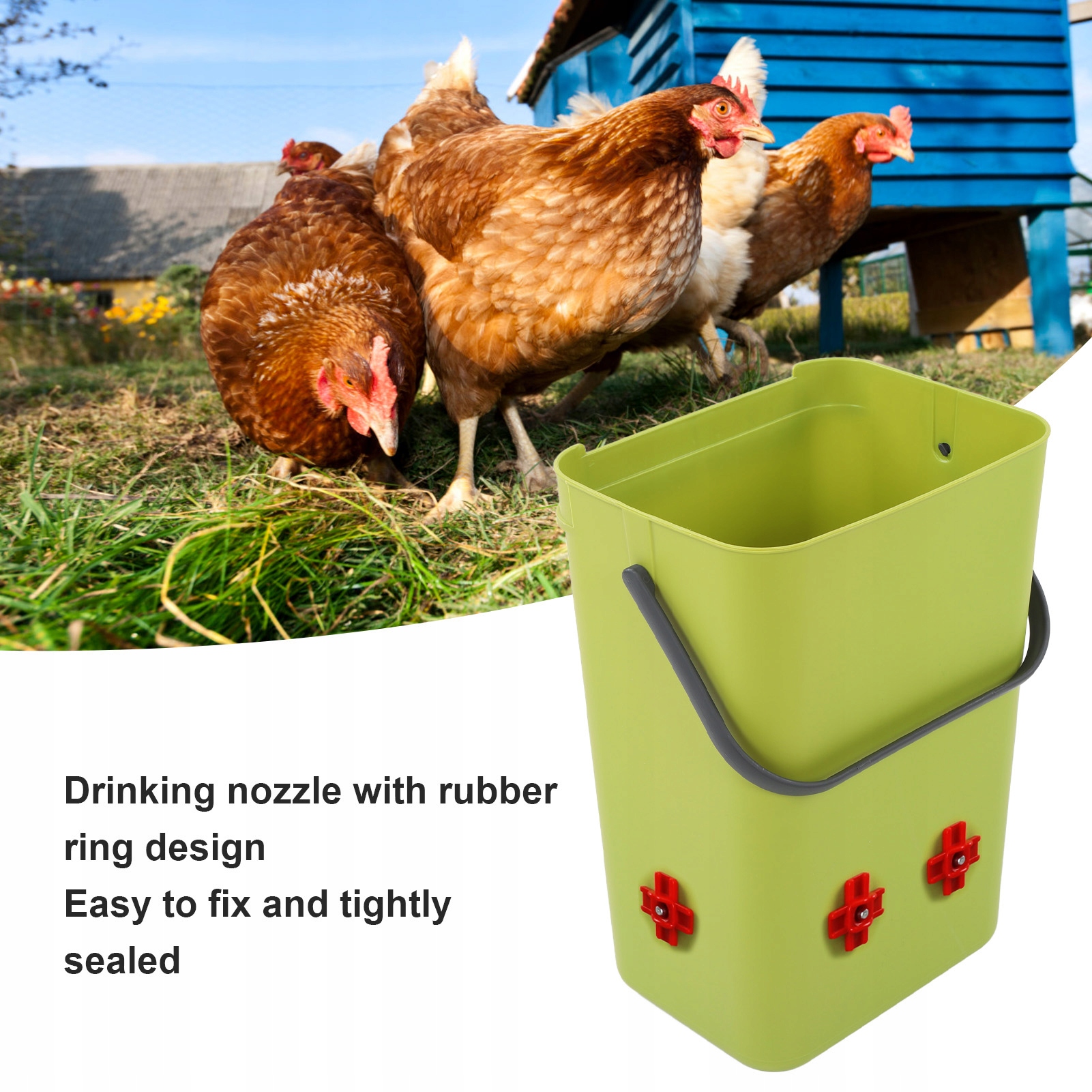 Особенность:1. 4 носика для питья: поилка для кур оснащена 4 носиками для питья, обеспечивающими легкий доступ к воде для нескольких птиц. Автоматическая подача чистой воды.