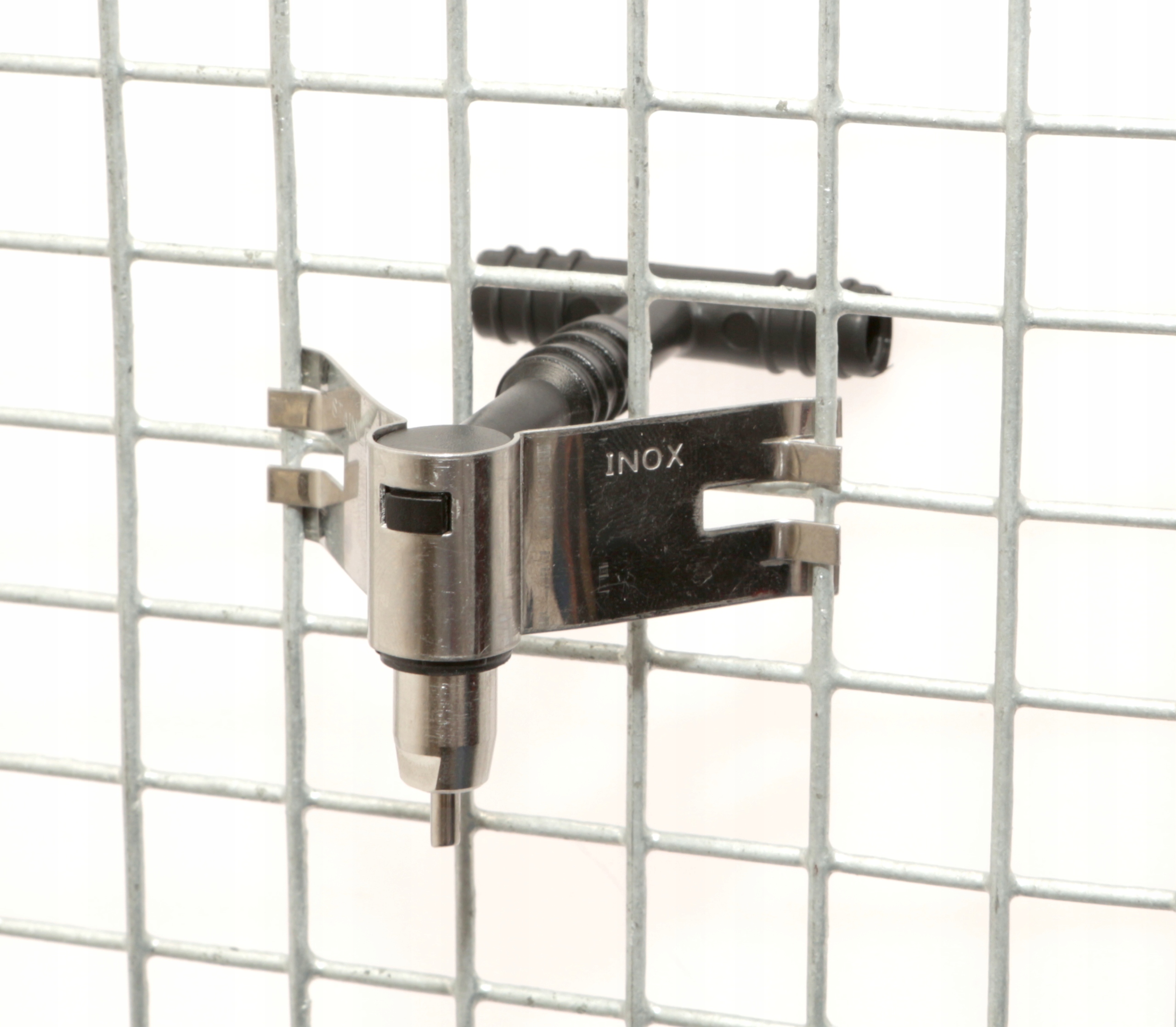 Входящая в комплект поилка для кроликов имеет удобную ручку для крепления на клетке. В комплект также входит тройник для шланга диаметром 10 мм, поэтому для подачи воды на весь комплект вам понадобится всего лишь шланг диаметром 10 мм (также есть на наших аукционах, продается по метрам). .