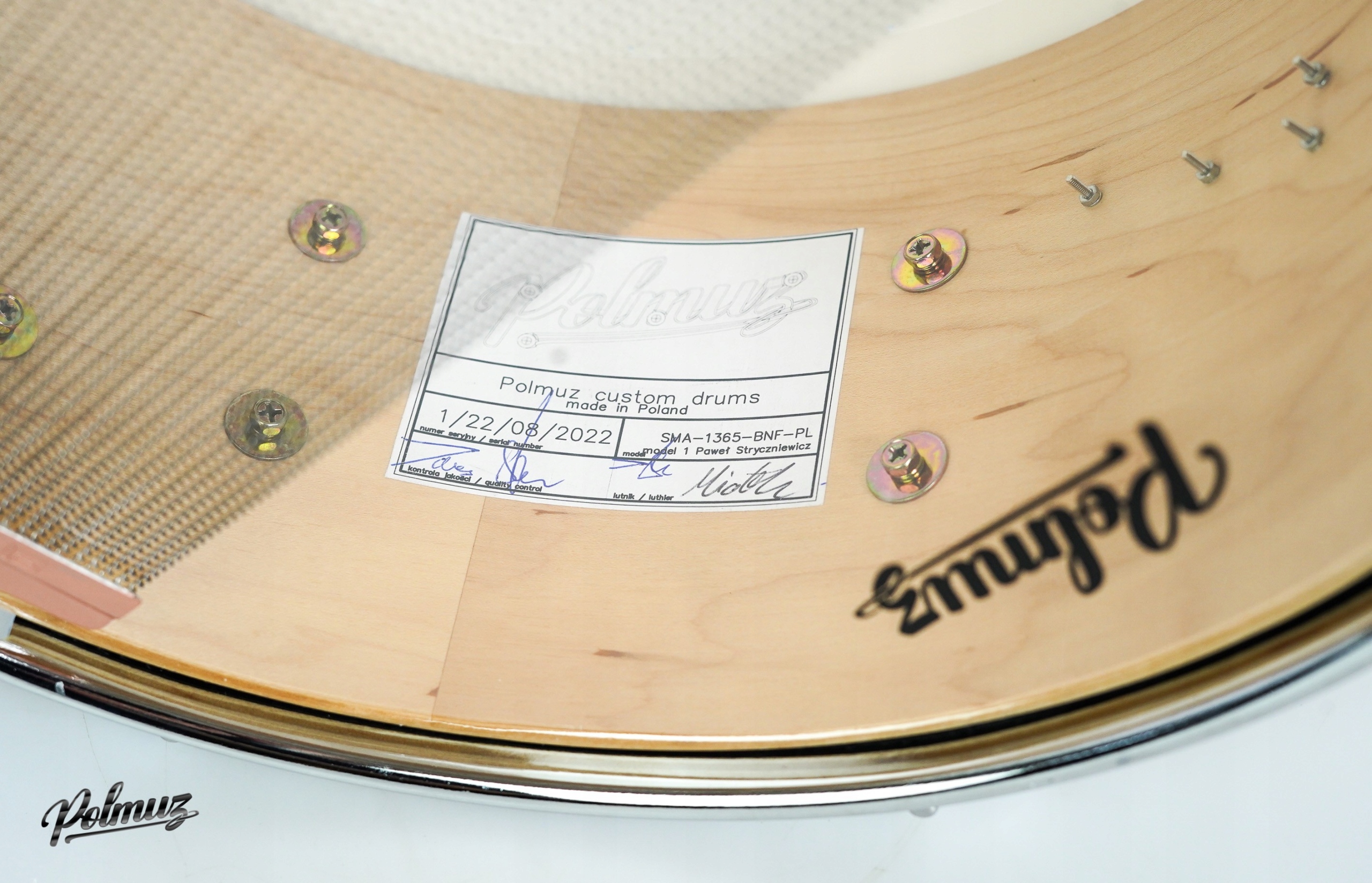 Полмуз, как и высшая серия от ведущих производителей, рассматривается индивидуально, а это значит, что в комплекте не может быть никаких повреждений или дефектов. После распаковки каждый элемент барабана тщательно осматривается и проверяется бдительным глазом скрипичного мастера. Мы стараемся, чтобы Полмуз запомнился как продукт премиум-класса, все края корпусов должны быть идеально ровными и гладкими, а дополнительно натираются воском для получения еще более насыщенного ощущения профессионализма и комфорта. Как мы хорошо знаем, идеально гладкая кромка приносит радость и счастье во время традиционного ритуала проведения рукой по кромке перед надеванием новой пластики, не говоря уже о легкости настройки барабана и идеальном звучании корпуса. Дополнительно проверяется все барабанное оборудование, ведь нет ничего приятнее, чем плавно вкручивающиеся винты в идеально подогнанные наконечники. После такого тщательного контроля качества отдельные элементы набора получают индивидуальную наклейку с серийным номером, датой и собственноручной подписью, подтверждающей высокое качество барабана. При обнаружении дефекта или неисправности кузов восстанавливается.