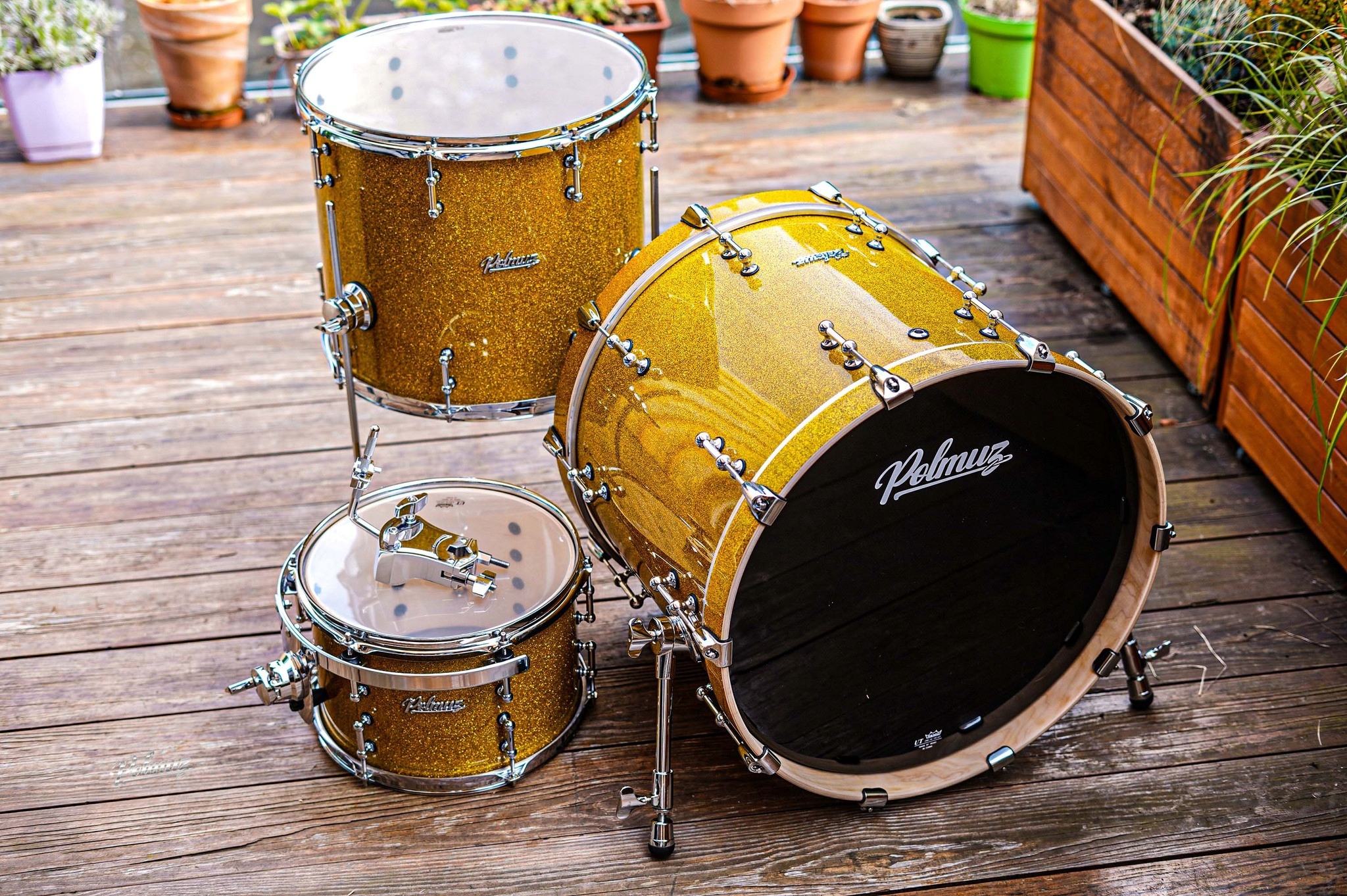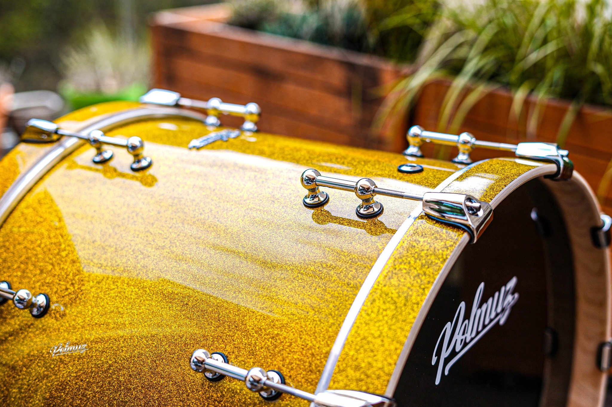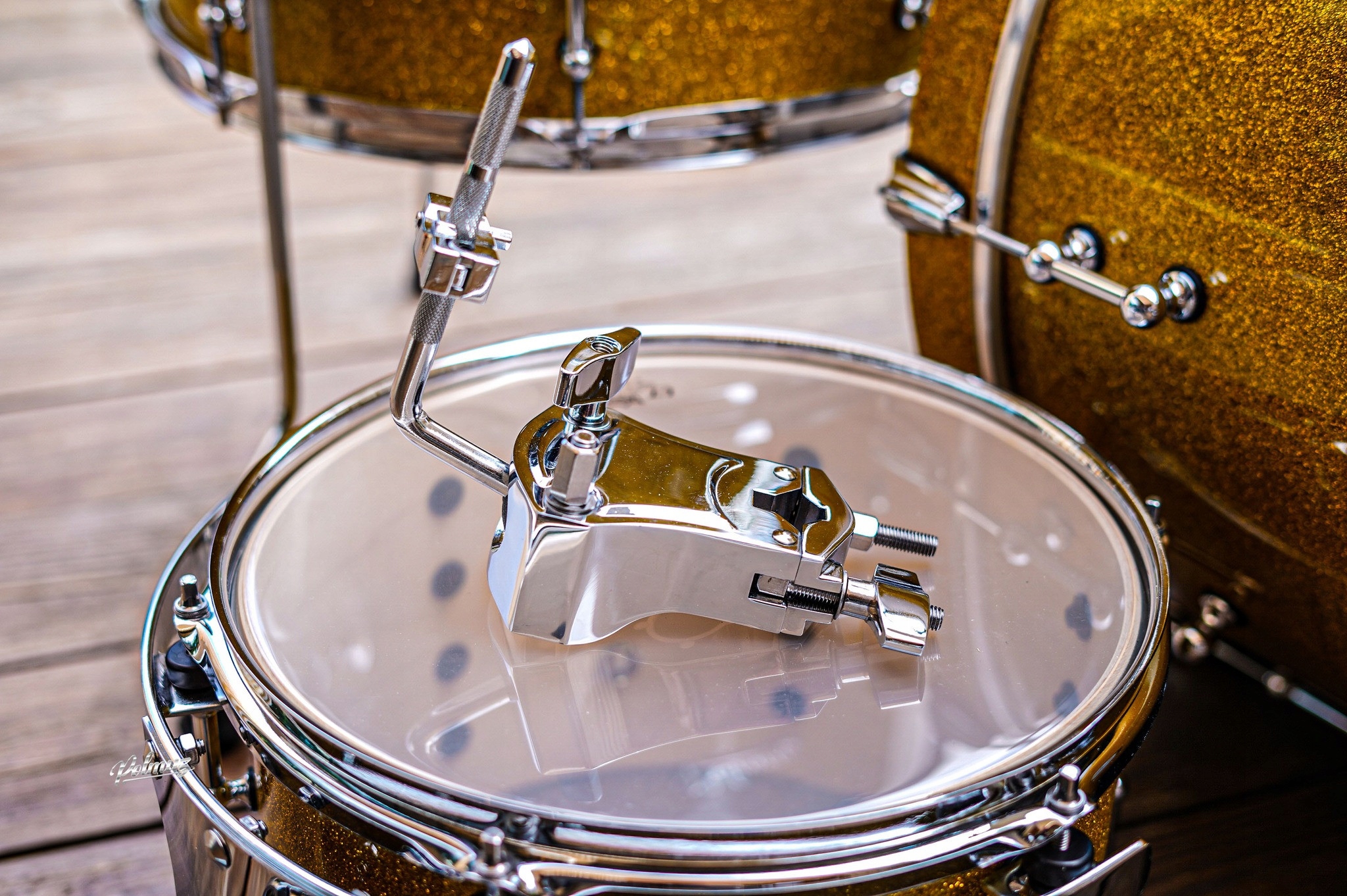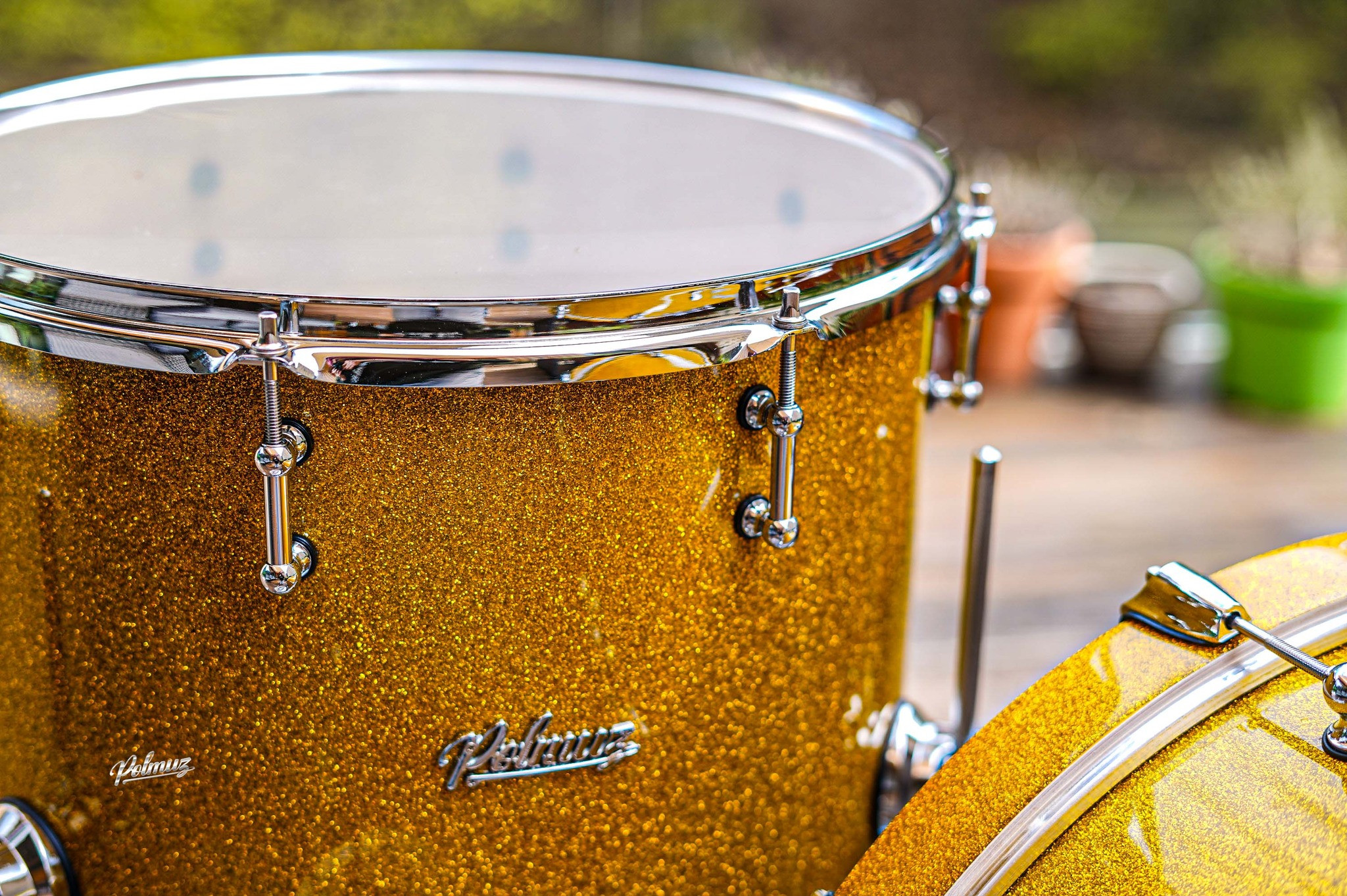 Оклоненная отделка придает каждому набору уникальный вид. Лак, используемый для завершения клена модели 2 барабанов из Polmuz, является самым высоким качеством. Безумный золотой блеск с толстыми зернами будет восхищать многих. Композиция и метод применения лака соответствуют тем, которые используются в лучших наборах признанных брендов.