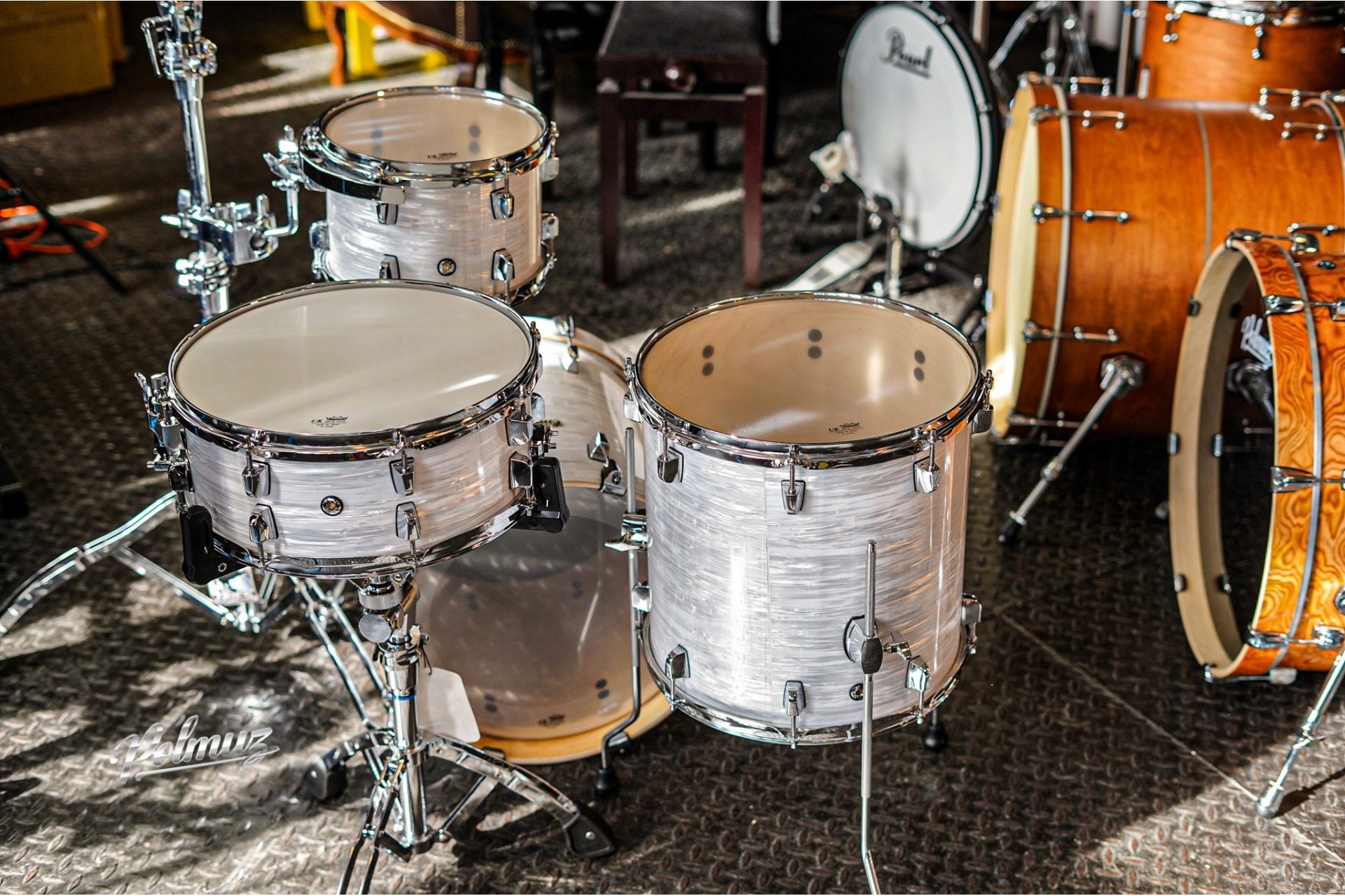 Скос кромки под углом 45 ° заставляет их контактировать с мембраной в оптимальной точке. Каждый край барабанов Polmuz отшлифован и дополнительно покрыт воском, что обеспечивает идеальный контакт мембраны с корпусом. Следствием такого решения является чистый звук во всем диапазоне частот. Острая поверхность контактной кромки томов обеспечивает быструю атаку и короткое затухание, а закругленная кромка бас-барабанов создает уникальный теплый винтажный звук.