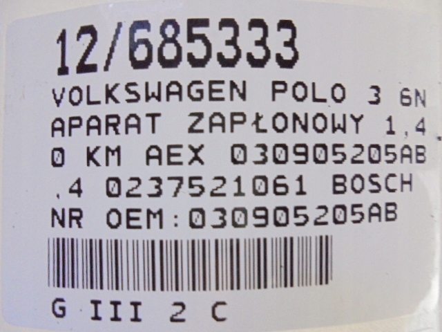 Polo 3 III камера 030905205AB 1.4 0237521061