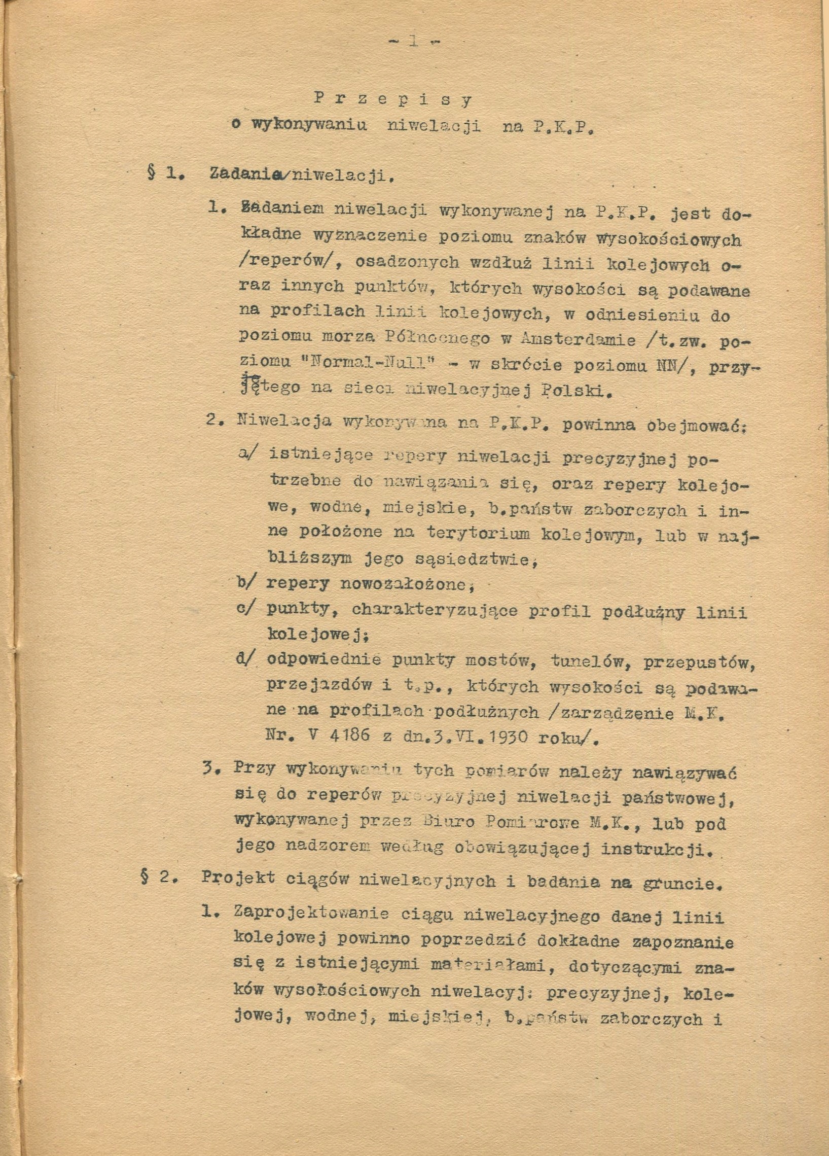 , выпущенное в 1936 году, положения, касающиеся осуществления уровня в польских железных дорогах (PKP), регулируя принципы измерений высоты, необходимые для проектирования, строительства, модернизации и обслуживания железнодорожной инфраструктуры.