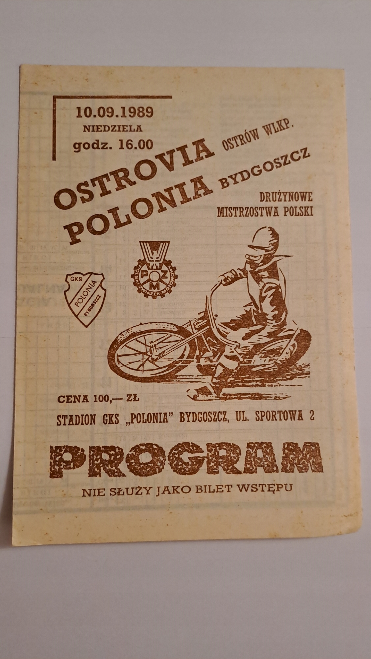Polonia bydgoszcz - Ostrovia ostrów WLKP 10-9-1989 - Программа чистой скоростной дороги