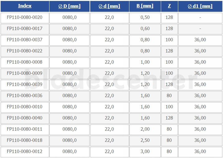 - все стандартные дисковые пилы имеют схождения боковых поверхностей, заданные в заданных диаметрах, что предотвращает заедание инструментов в процессе резки.