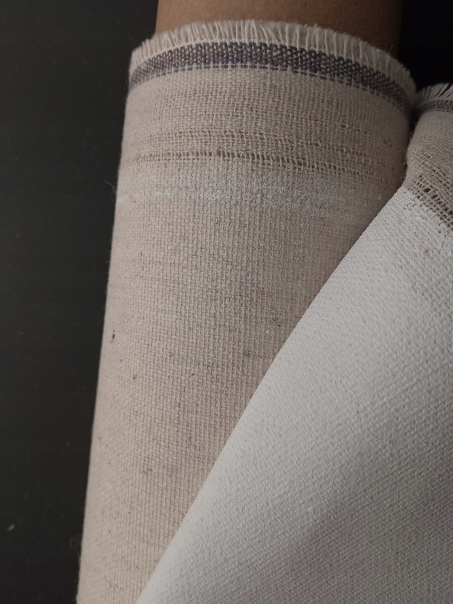 Холст грунтованный, хлопок+лен, длина 10 м. Более прочный, чем хлопок, плотный холст плотностью 340 г/м2. Содержание льна очень высокое – около 45%. На аукционе рассматривается холст шириной 1,08 м (идеально подходит для холстов с одной стороной 100 см).