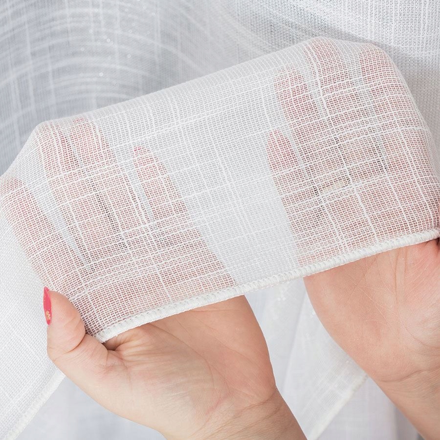 Легкая, но выразительная штора по метражу с льняной структурой, украшенная тонким блеском, - отличный выбор для современного, классический или минималистичный интерьер. В нижней части шторы имеется эстетичный карниз, который позволяет материалу после подвешивания самостоятельно образовывать мягкие волны. Ткань хорошо закроет окно, но не затемнит интерьер.Нежный блеск, размещенный по всей поверхности шторы, будет мягко переливаться при естественном и искусственном освещении.