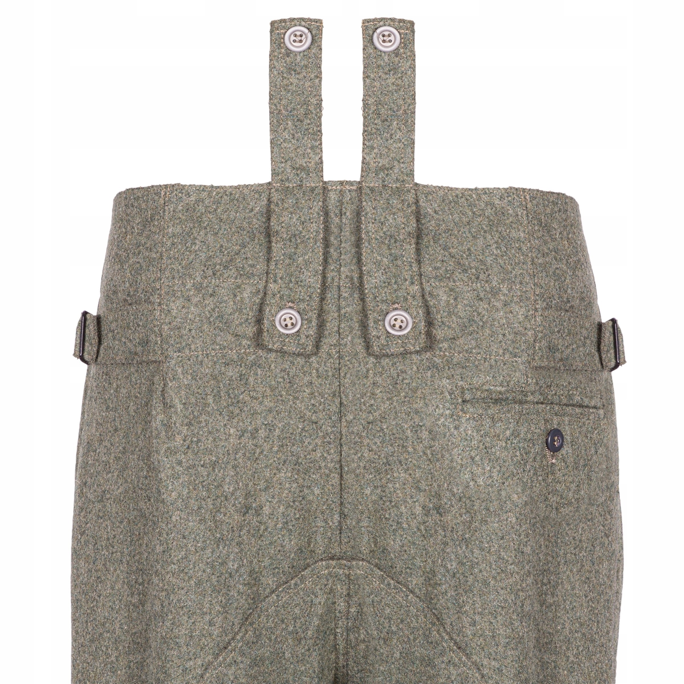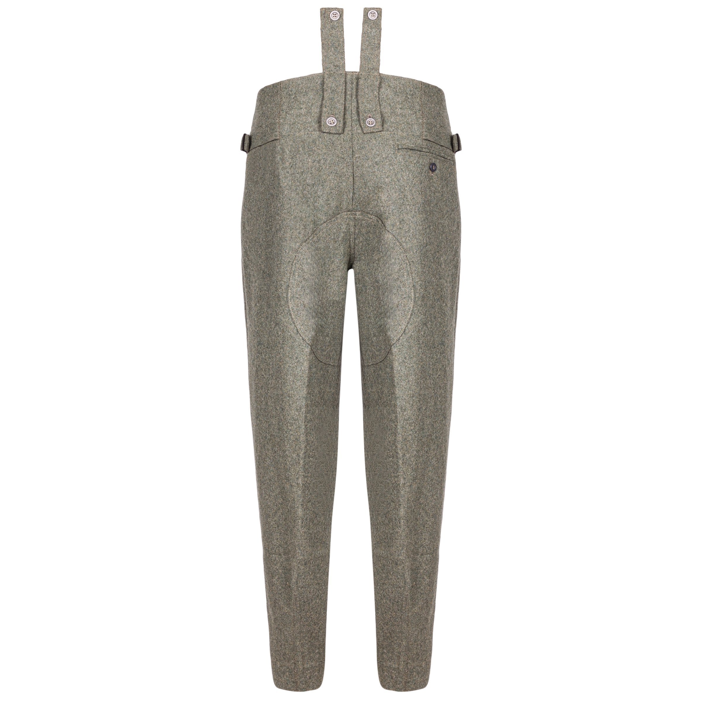 Идеальная копия немецких брюк М43. Брюки изготовлены из ткани красиво воссозданного оттенка полевого зерна. Брюки выполнены идентично оригинальным, точно воспроизведены вес и фактура материала, пуговицы, застежка сзади и крючок для часов. Производство по заказу компании Nestof®.