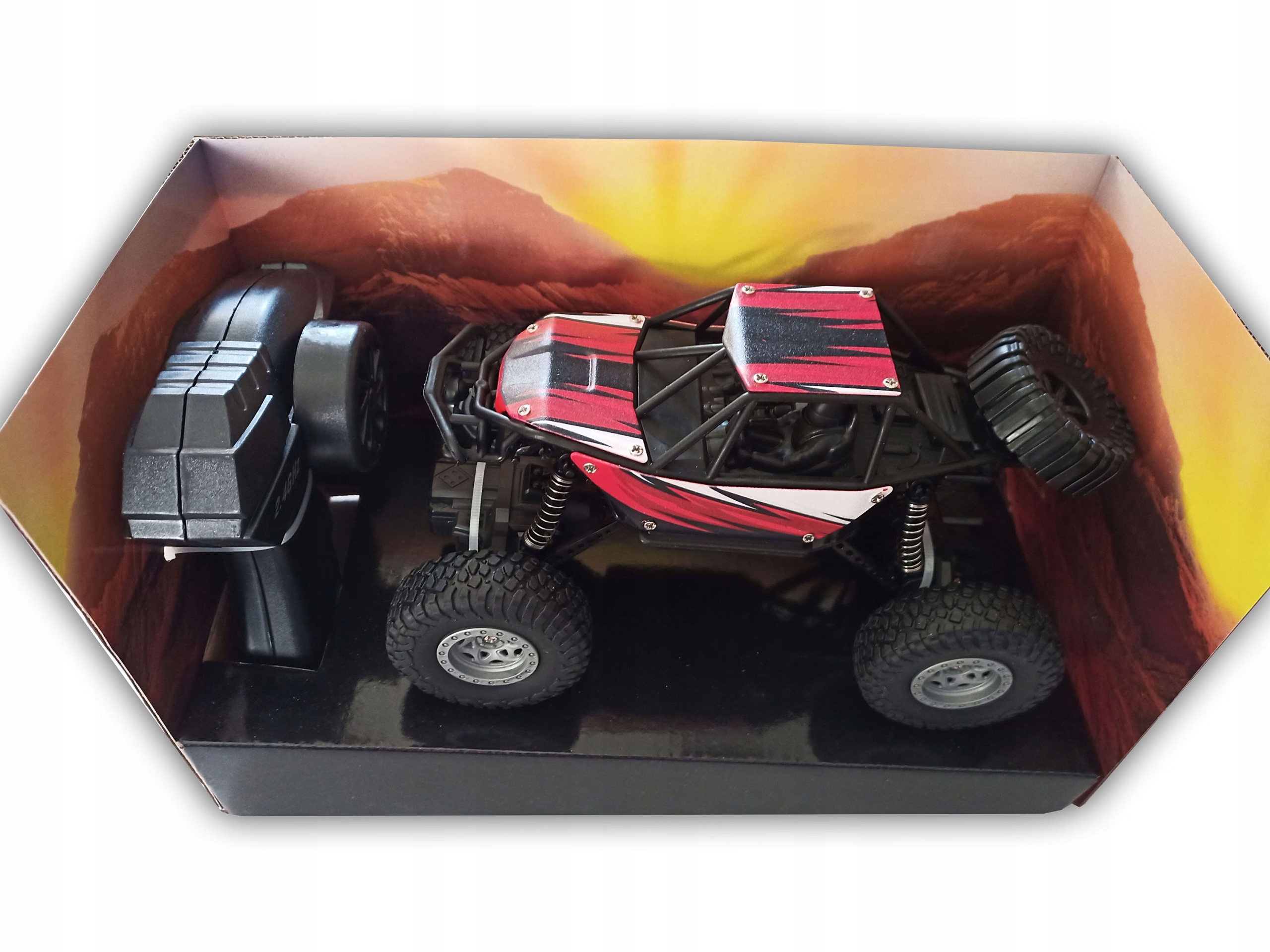 Автомобиль с дистанционным управлением-это автомобиль внедорожника, для которого никакое препятствие не является ужасным. Идеально работает как на асфальте, так и на неровных камнях или лесном мусоре. Высокая подвеска позволяет вам ездить по многим типам местности, поэтому он не является ужасным препятствием и сложной местностью. Большие колеса обеспечивают адгезию, а амортизаторы помогают быстро и эффективно преодолевают каждый путь. Он имеет независимую подвеску, толстые шины и металлические элементы корпуса, что еще больше увеличивает радость веселья. Автомобиль может быть заряжен с помощью USB -кабеля, включенного в набор.