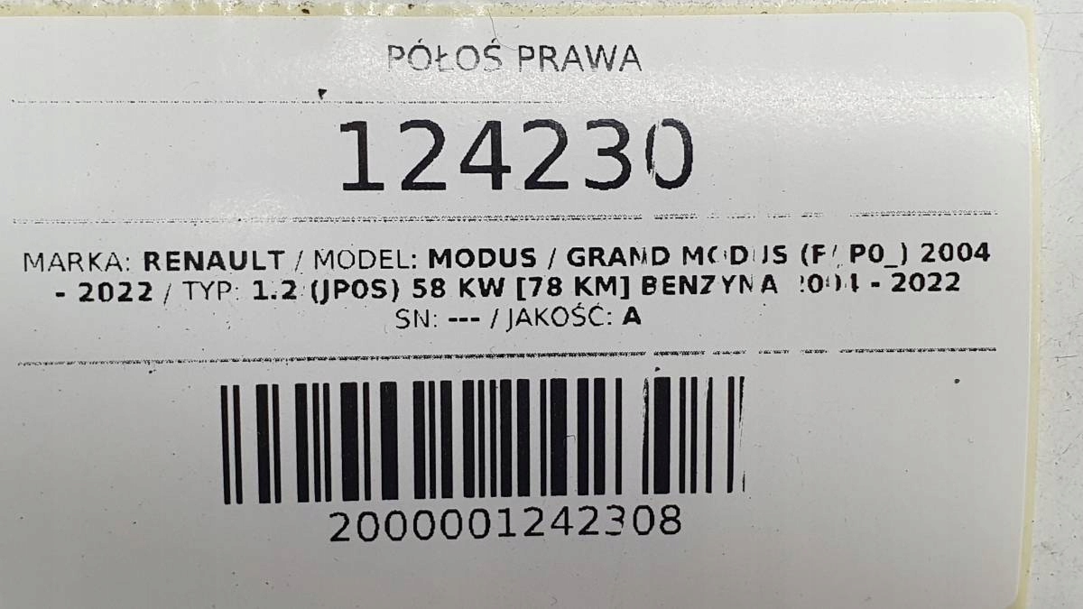 Элемент аукциона: передняя передняя передняя часть правого Renault Modus 1,6 B