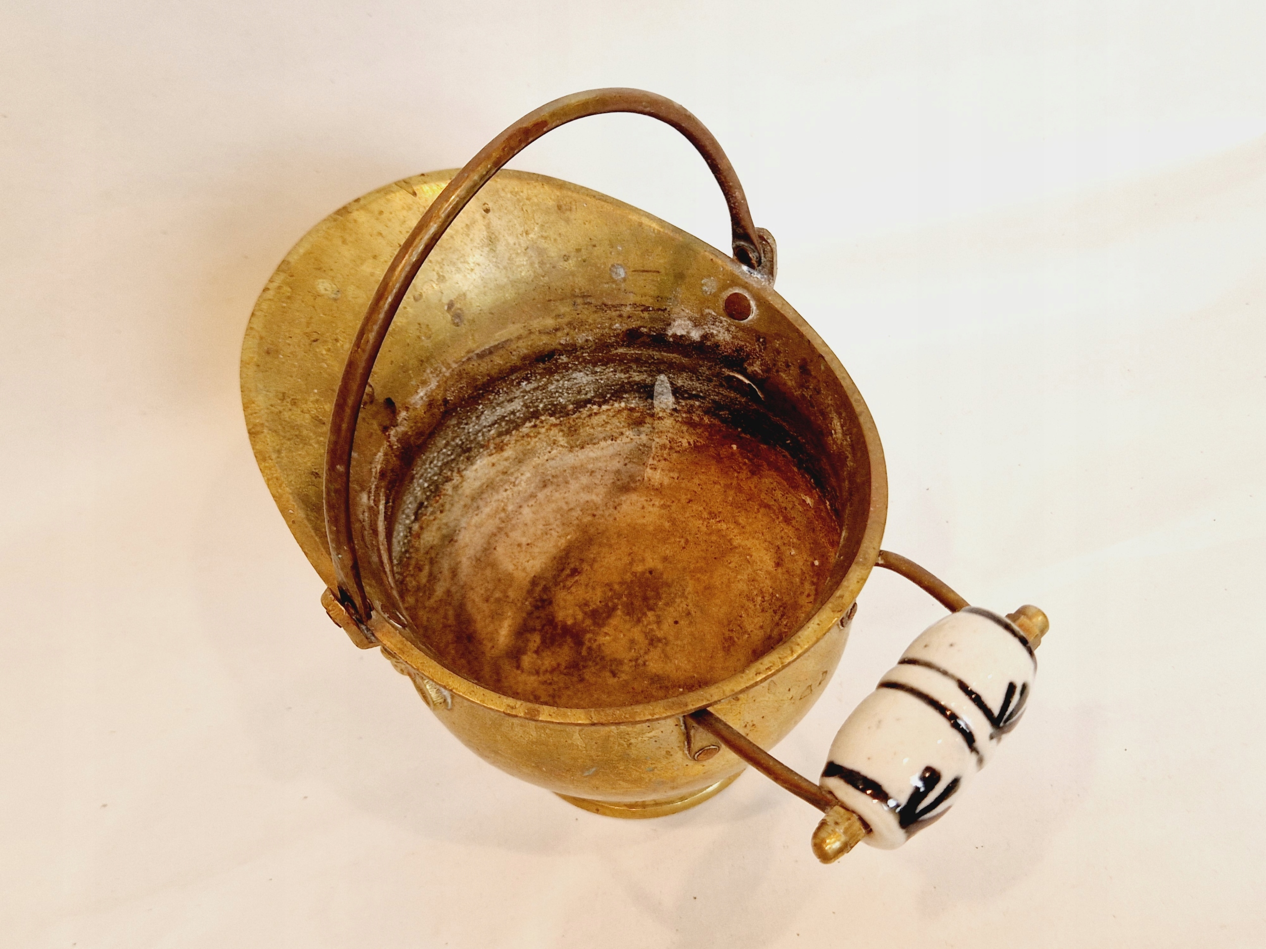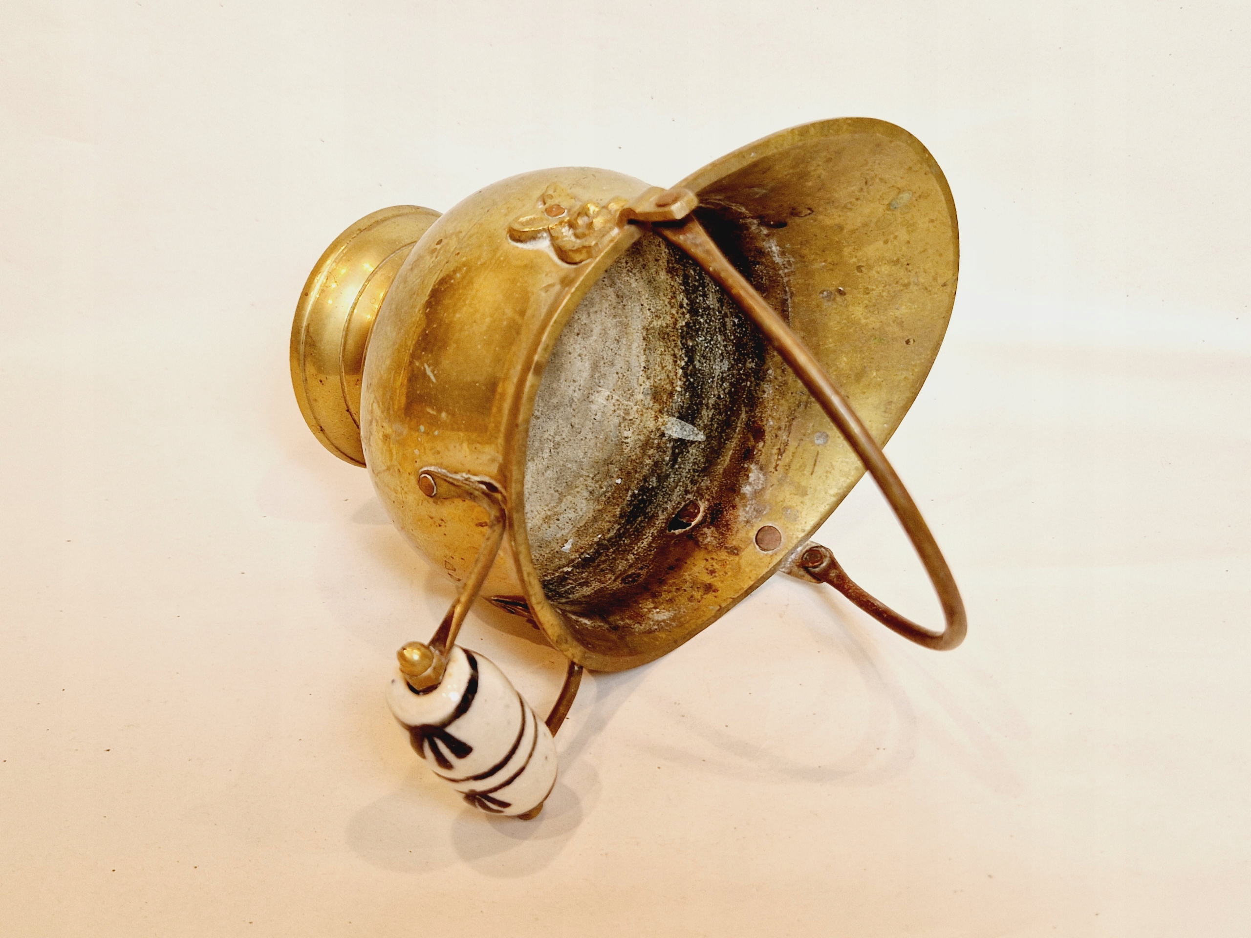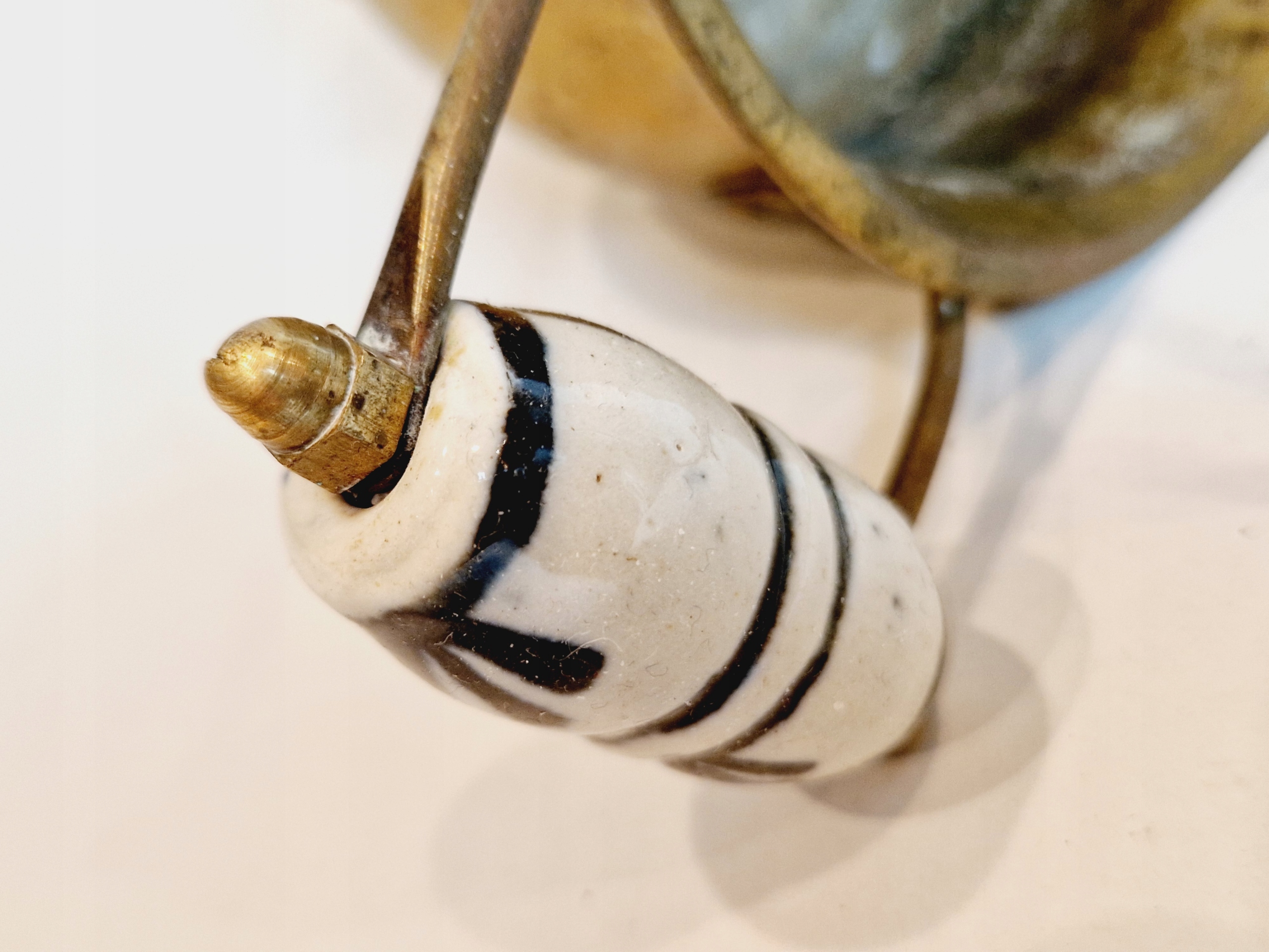 Фарфоровая ручка (ручка) на латунной леске, заклепана медью.