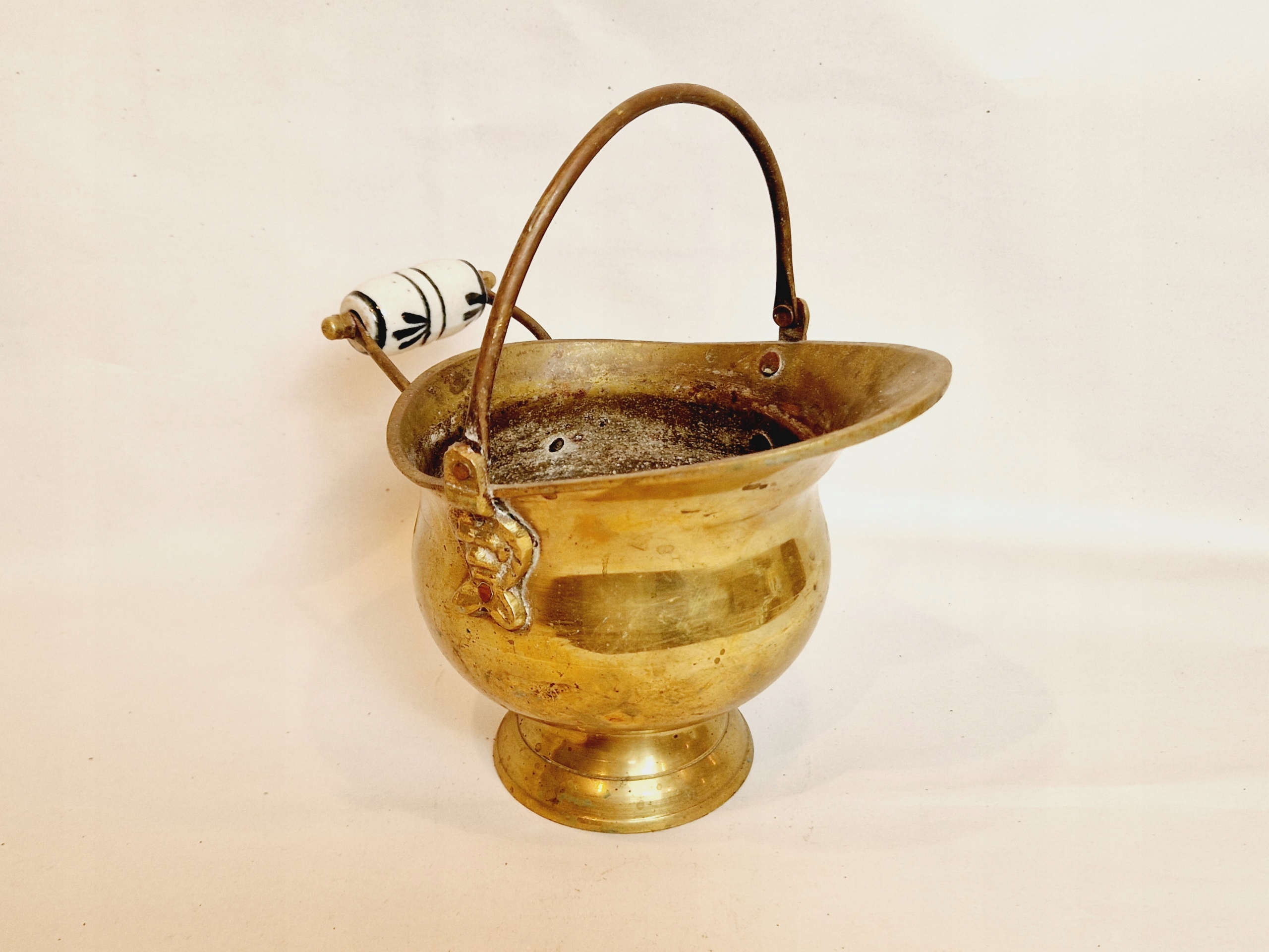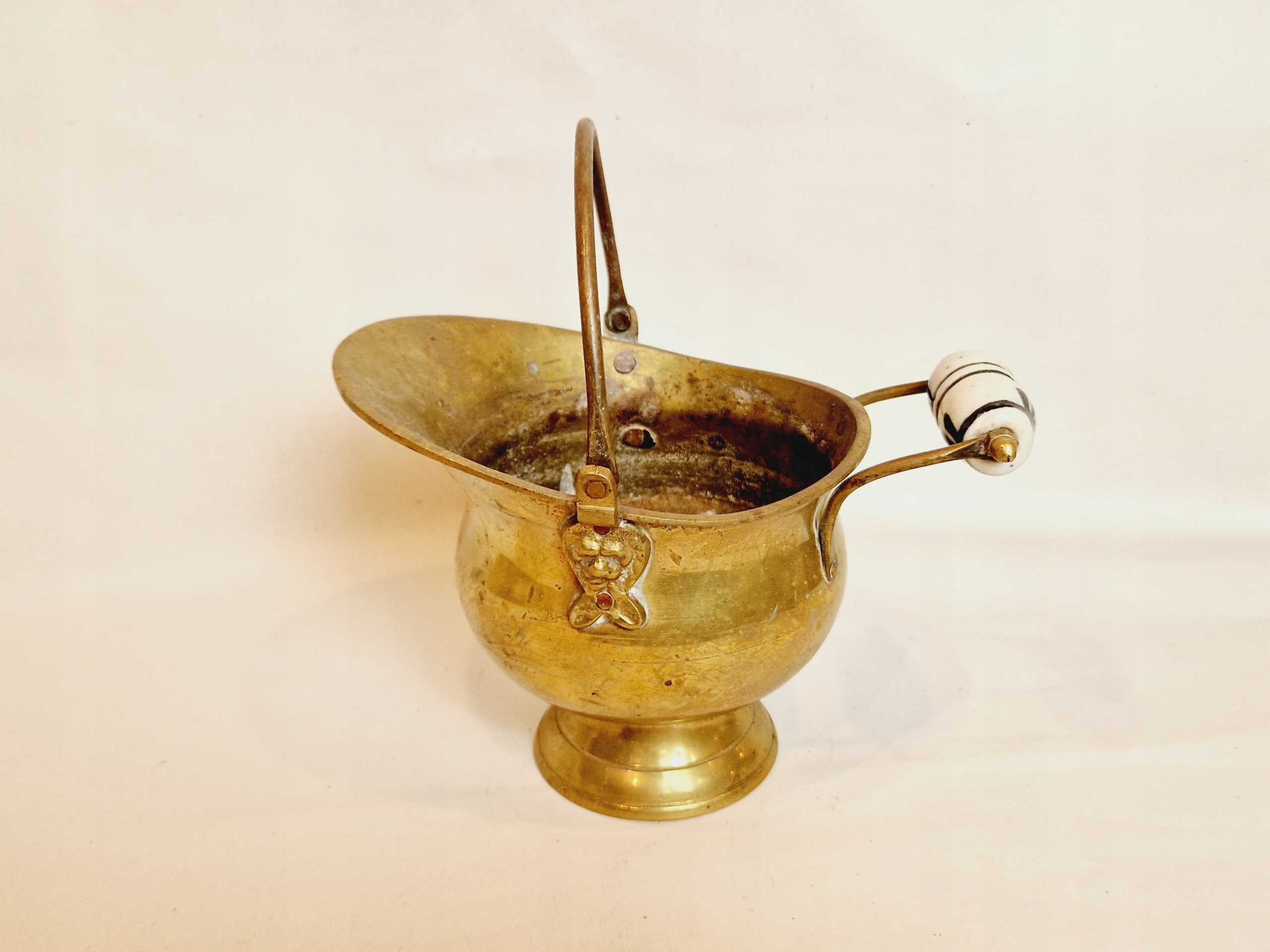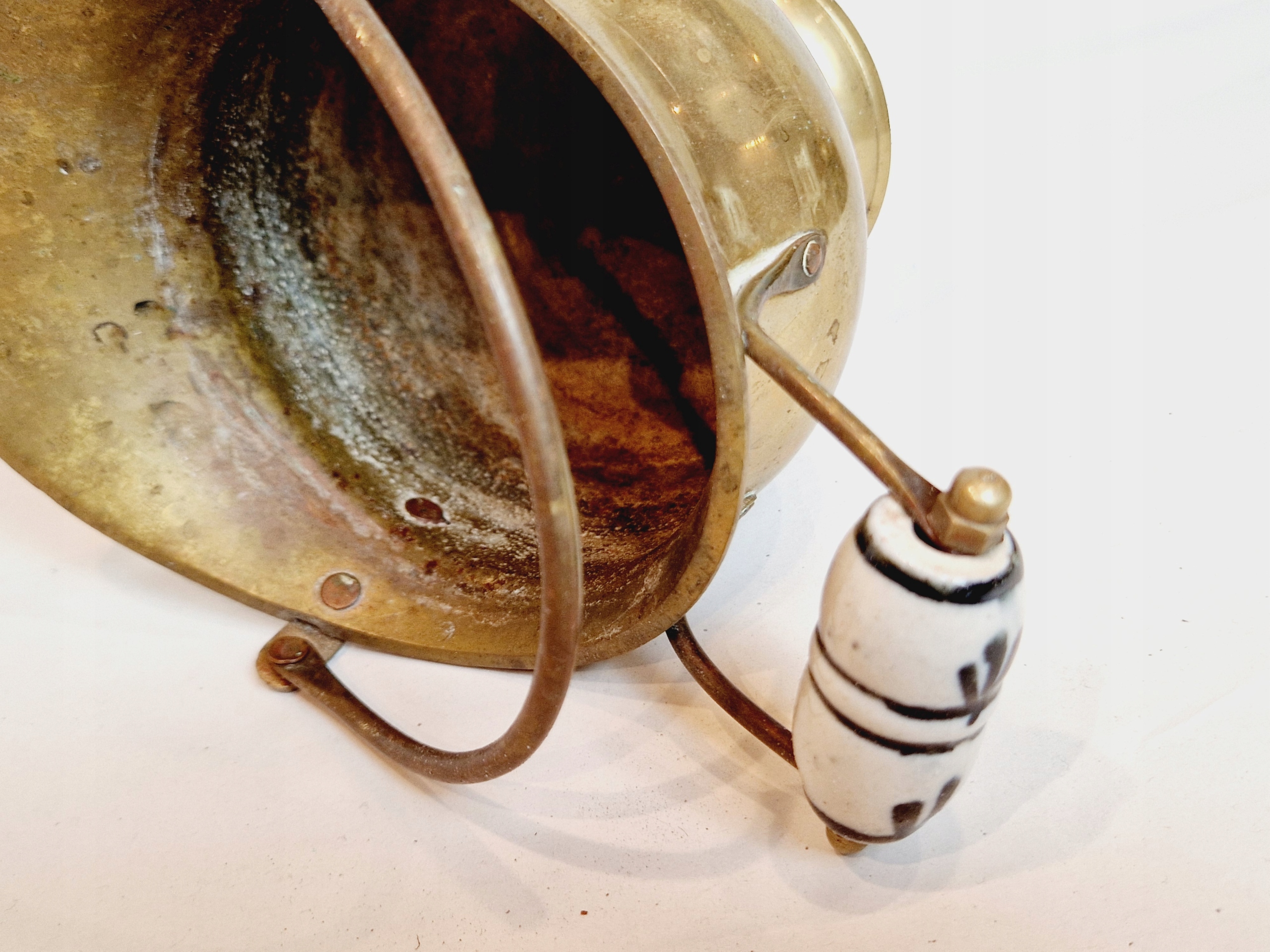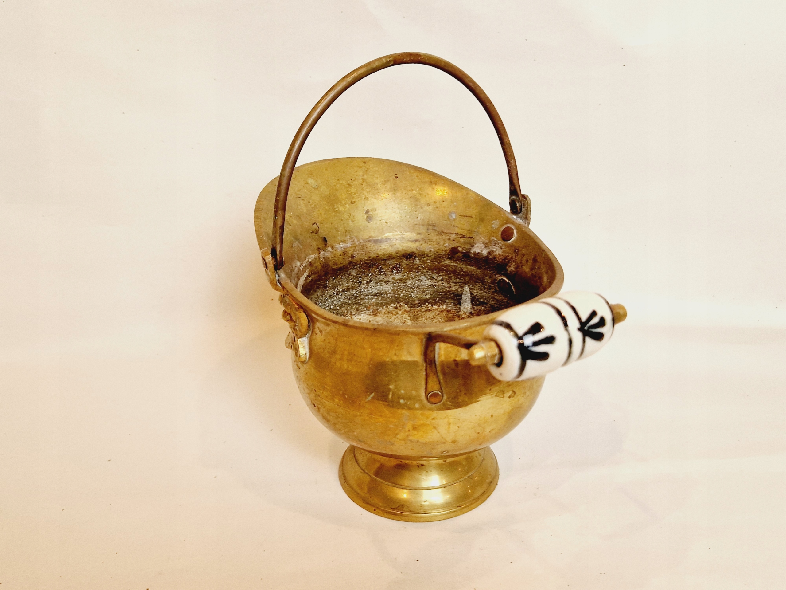Фарфоровая ручка (ручка) на латунной леске, заклепана медью.
