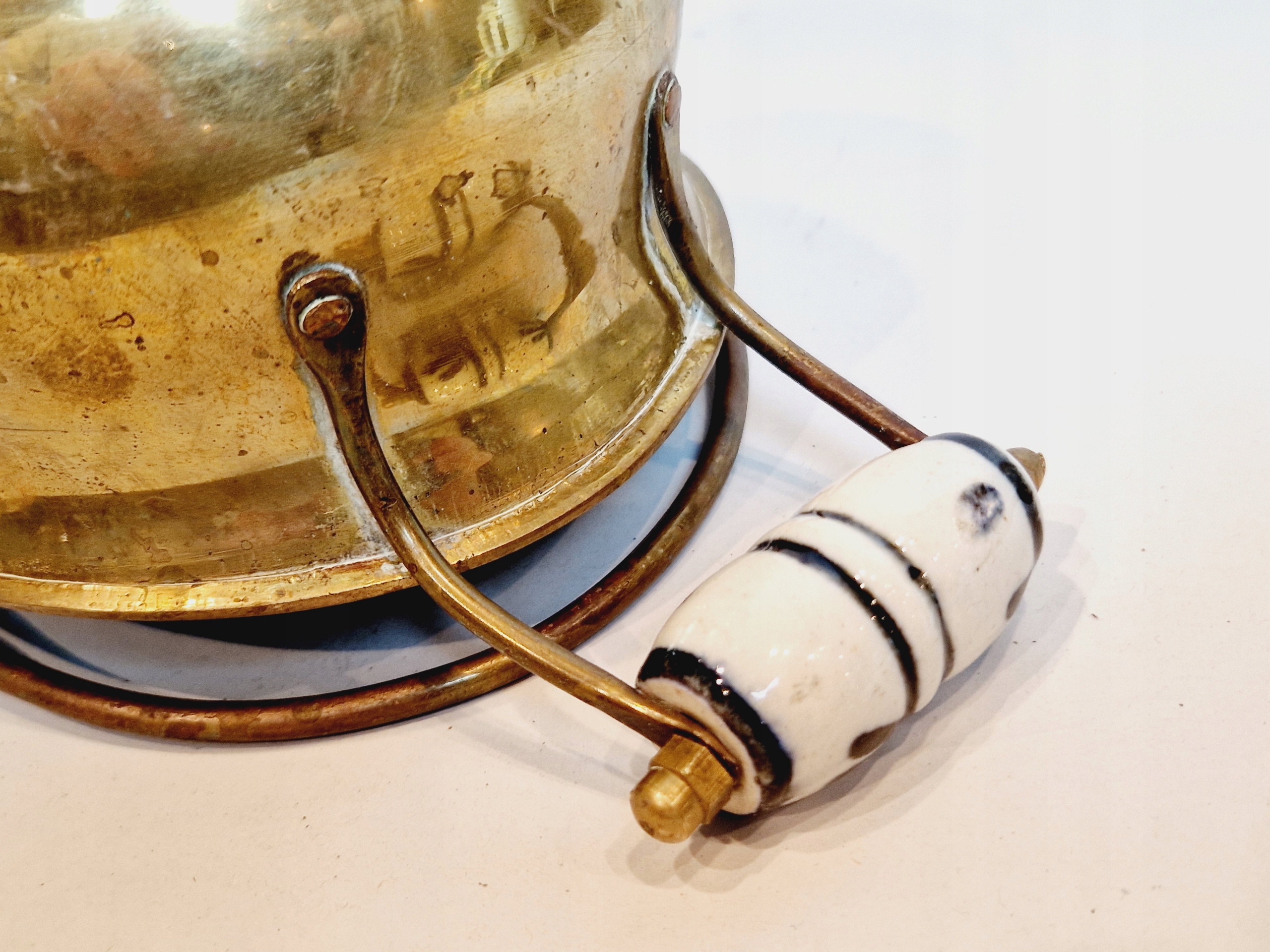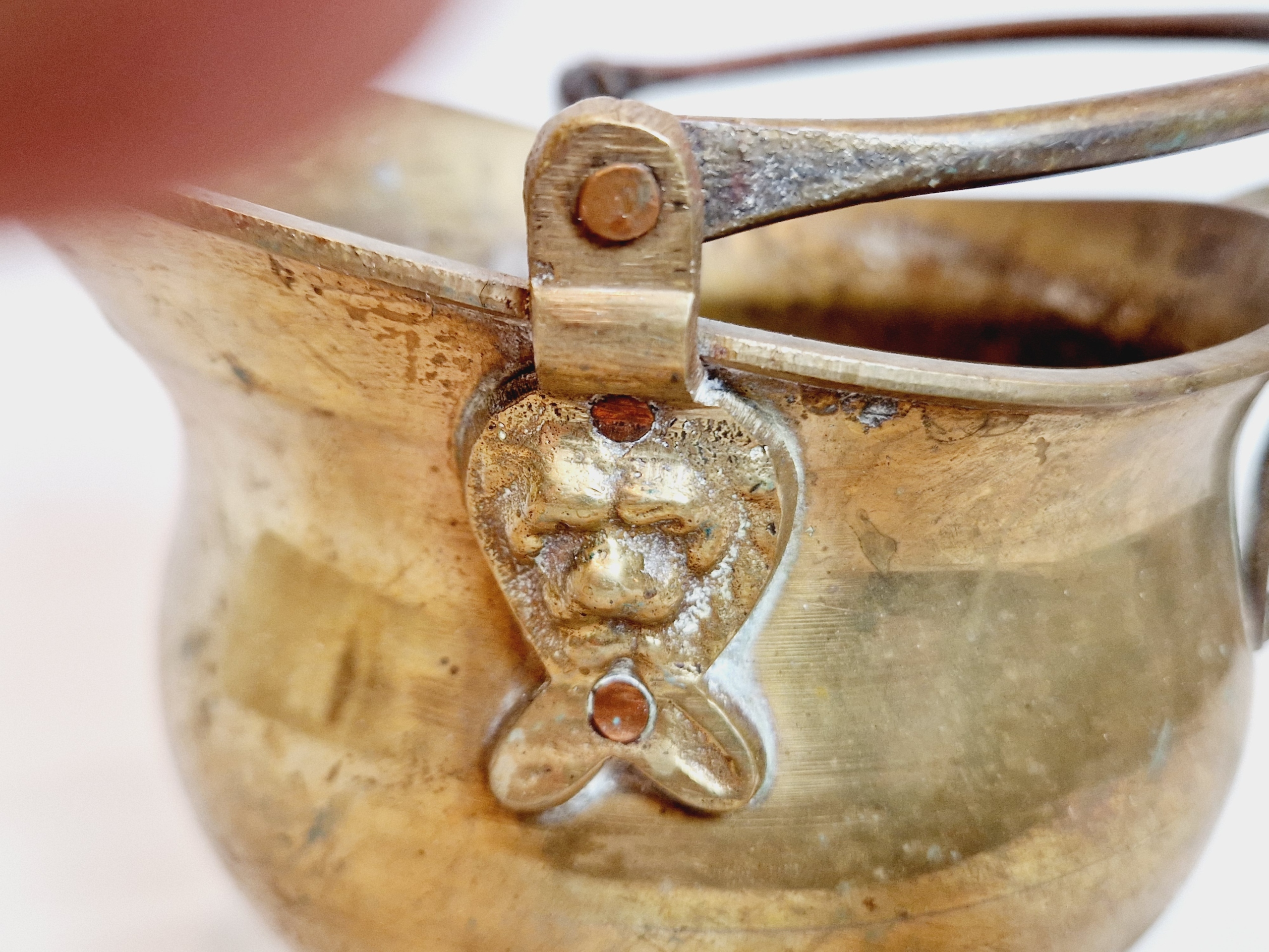 Медная верхняя ручка, с латунными аппликациями (львы), проклепанная медью.