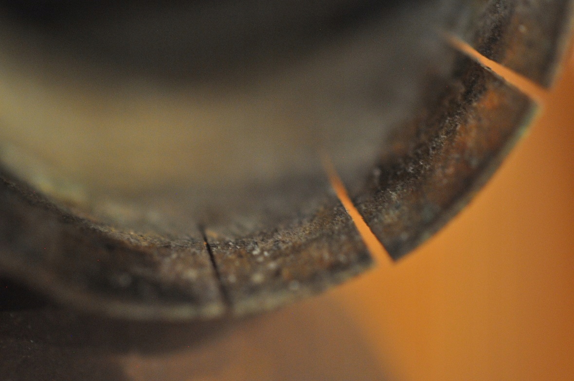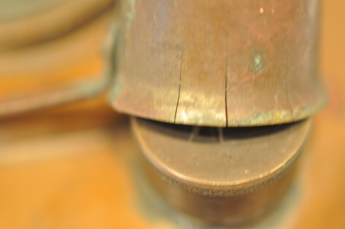 Огнетушитель с вертикальными трещинами - без потери устойчивости крышки.
