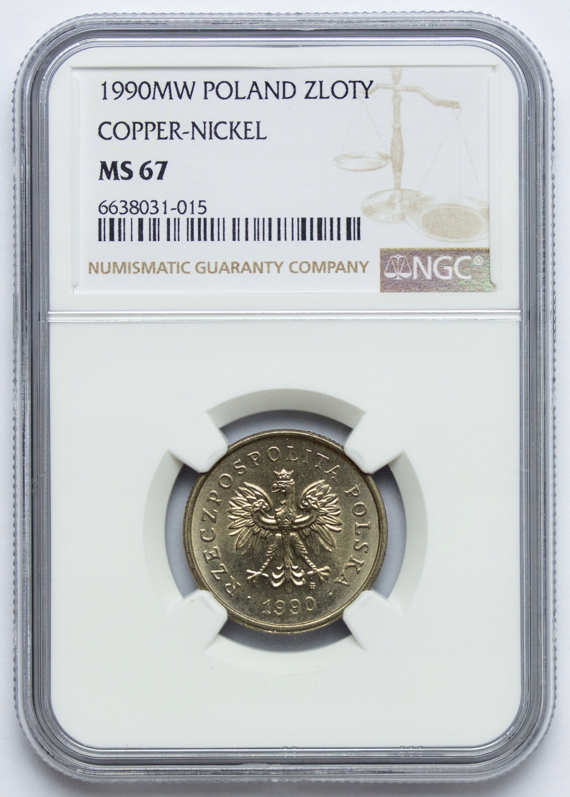 Польща, 1 злотий 1990, NGC MS67, КРАСИВИЙ