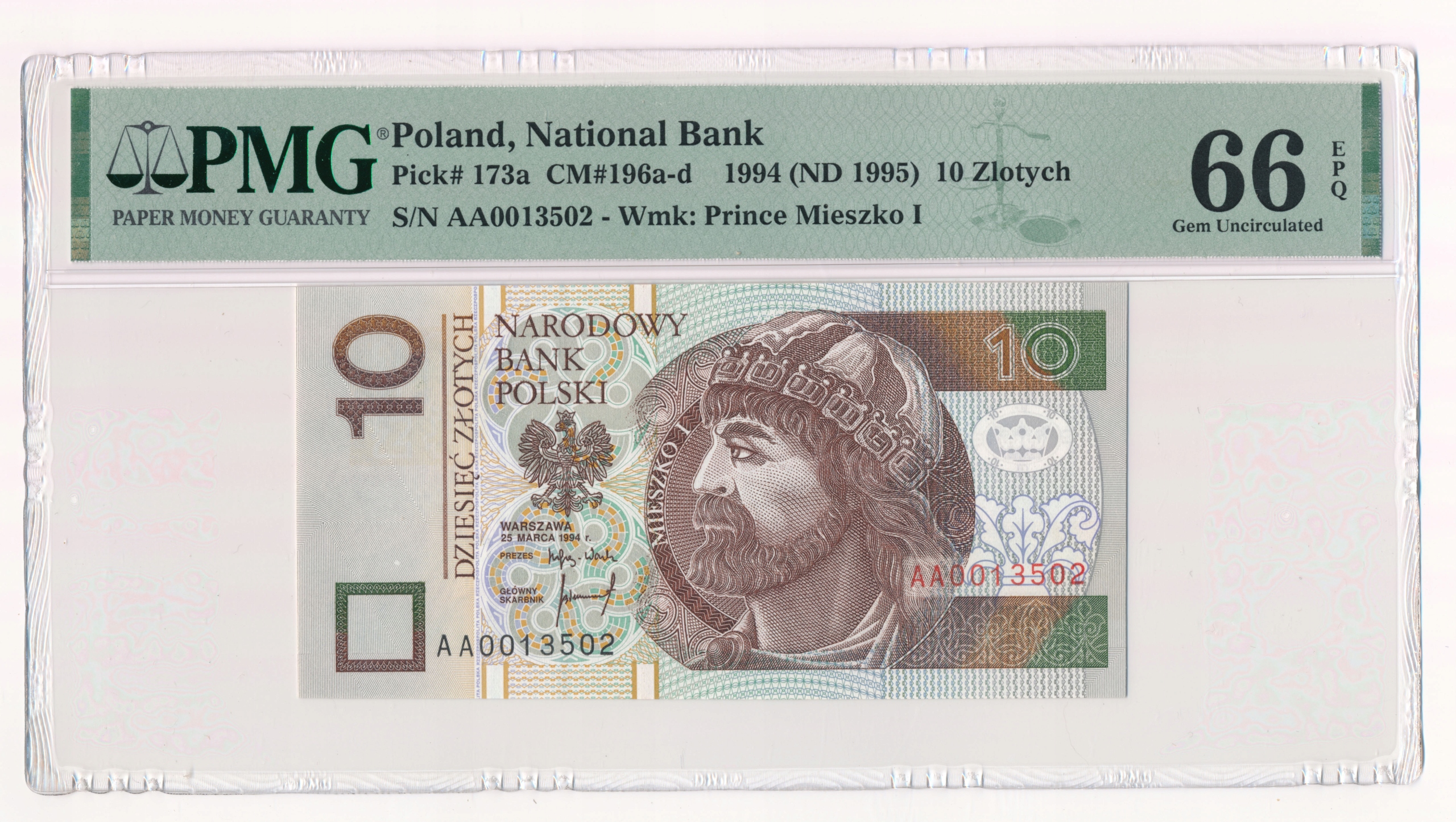Польша, 10 Zlotys 1994, серия AA, PMG 66 EPQ