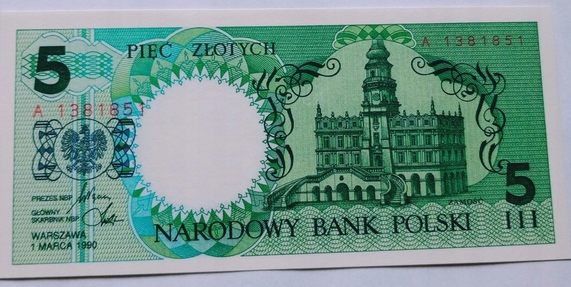 ПОЛЬЩА -1990- 5 ЗЛОТИЙ СЕРІЯ А -КОПІЯ- L162X