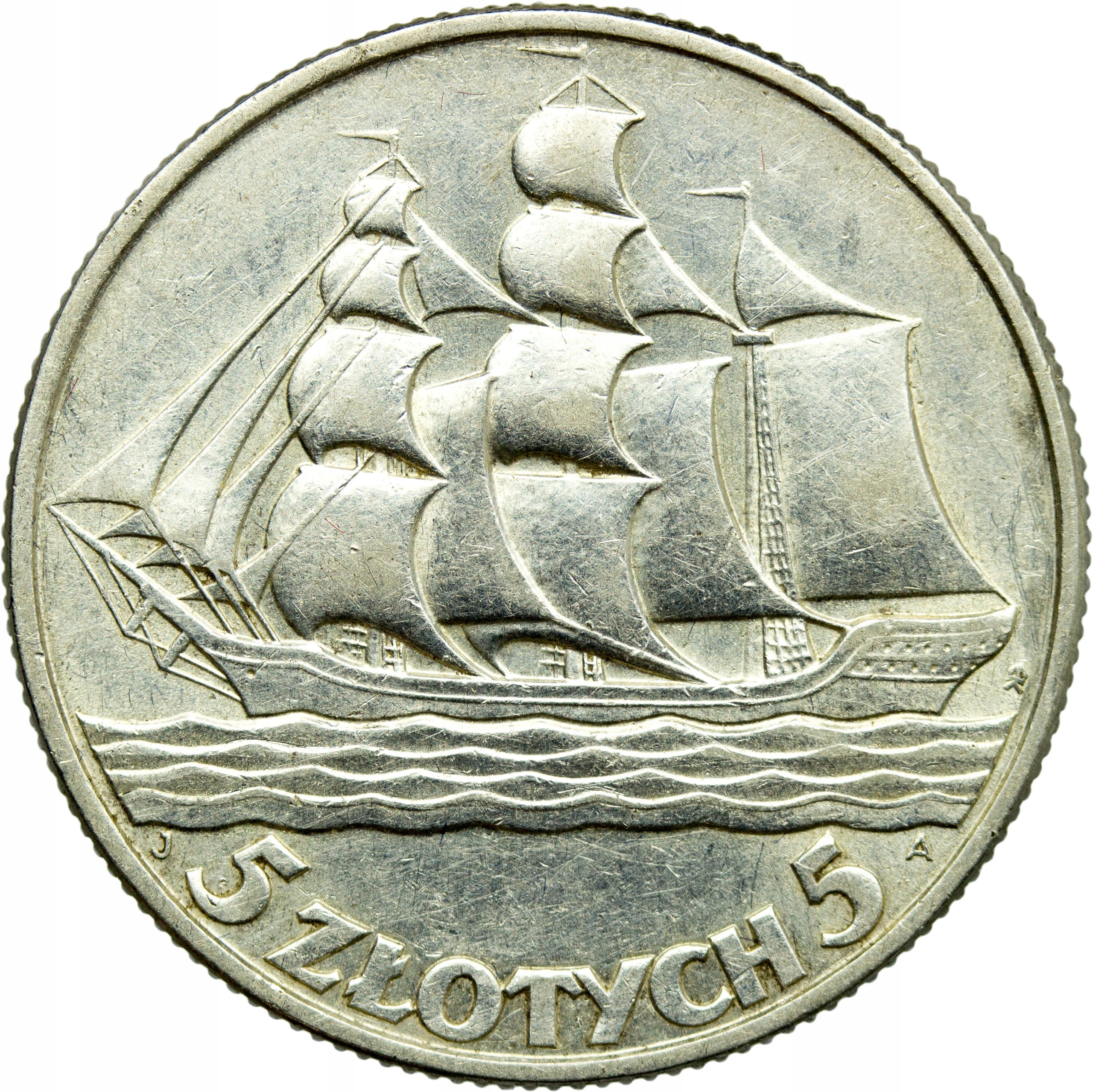 Польша, II RP, 5 Zlotys 1936, парусное судно